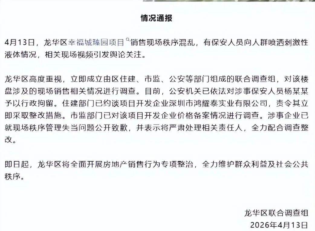 官方通报也印证了这一点:涉事保安被行政拘留,住建部门约谈开发商,责令整改,市监部门还在调查价格备案情况 。