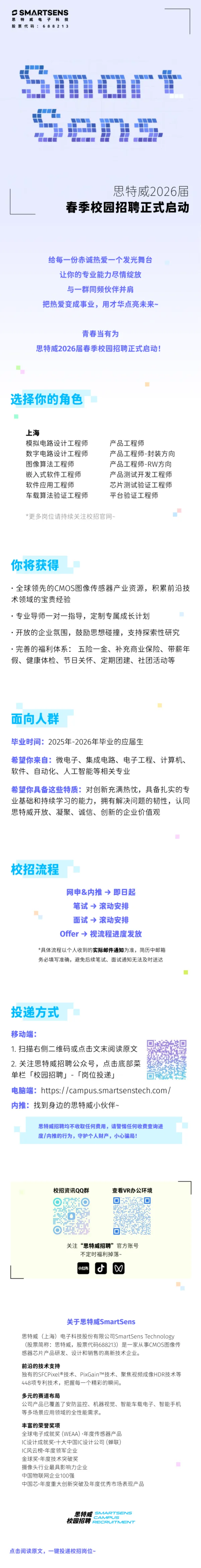 >【招聘信息】思特威电子科技:上海/深圳/合肥/香港/海外等