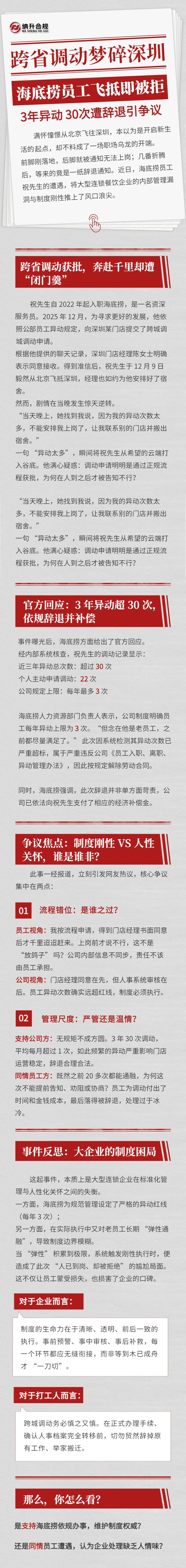 海底捞员工遭辞退引争议(跨省调动梦碎深圳!3年异动30次遭辞退引争议)
