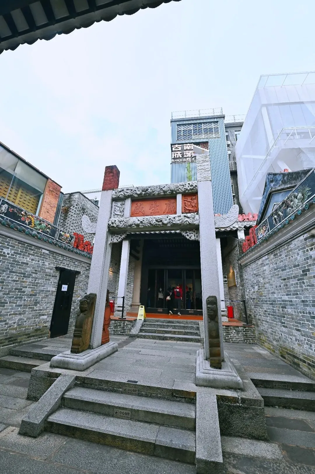 景区整体占地20亩,核心建筑坐西朝东,以青砖灰瓦为主要建筑材料,色调素雅古朴,其建筑风格独树一帜,既融合了苏州园林的精巧雅致、曲径通幽,又兼具传统战楼的威武庄严、气势恢宏,形成“清游古博”的独特风貌,园内布局精巧,设有古戏台、蜿蜒长廊、巍峨城墙及四座各具特色的门楼——文宗门、辅政门,东门等,地板与城墙皆由青砖铺就,是一座承载深厚历史文化底蕴与岭南建筑风韵的仿古园林建筑群。