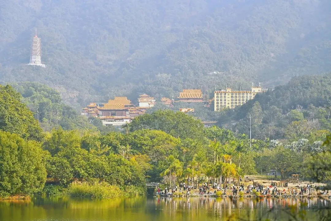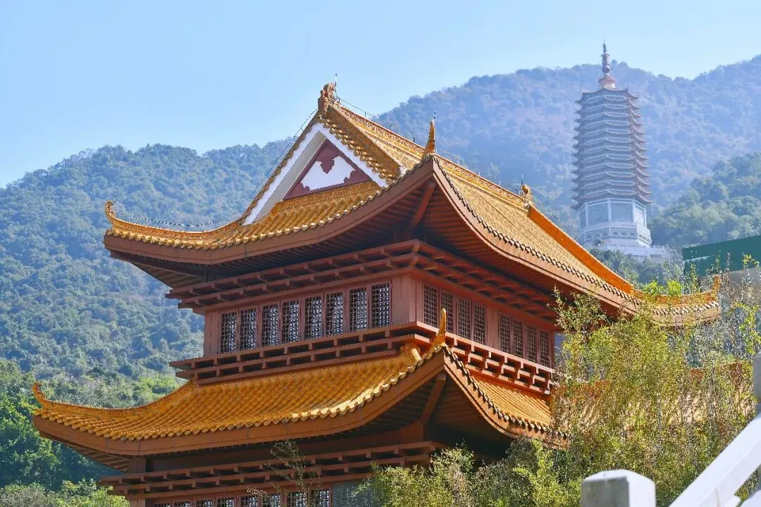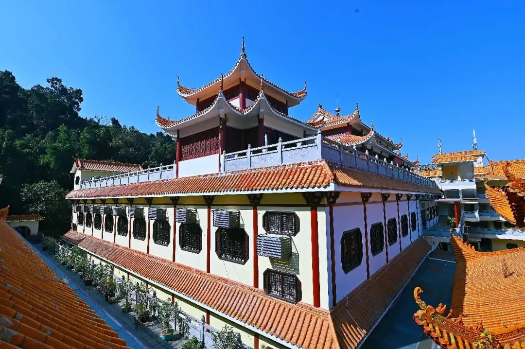 弘法寺,属南禅临济宗临济法派,位于深圳仙湖植物园内,背倚深圳“绿色心肺”梧桐山,面朝仙湖,周边自然风景十分优美,寺庙始建于1985年,历史虽然不算太久,但规模在当地应该是首屈一指,现已成为深圳当地香火最旺、规模最大的佛教寺庙。