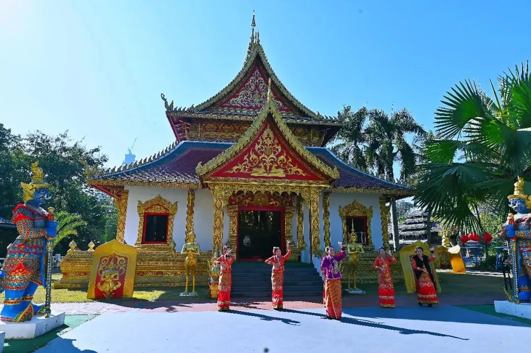 其主要建筑山门殿位于山门底下,屋顶为重檐歇山式,门口有两只大狮子守护,象征三解脱的空门、无相门和无作门;天王殿供奉弥勒塑像和四大天王塑像,以及背面的韦驮护法塑像;大雄宝殿供奉释迦三圣金身塑像,包括释迦牟尼佛、文殊菩萨和普贤菩萨,以及唐玄奘和尚和观世音菩萨的金身塑像,整个庙宇建筑宏伟壮观,金碧辉煌。