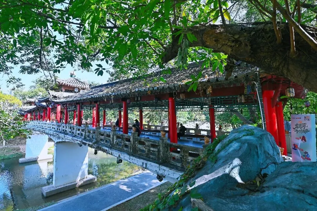 园区横跨龙岗河两岸,有中国(深圳·龙园)观赏石基地,含奇石馆、客家精品展馆等,其主要景点有:罗汉塔塔总高32米,檐分八面,共七层,因塔内供奉五百阿罗汉而得名;九龙壁采用透雕工艺的大青石雕刻而成,九条龙雕刻得栩栩如生;五龙亭由五间临水而建的方形亭子组成,错落有致,呈S形排列,宛如蛟龙浮出水面;回龙桥为一座跨越龙岗河、具有侗族建筑风格的风雨廊桥,护栏饰有78座石雕龙头。