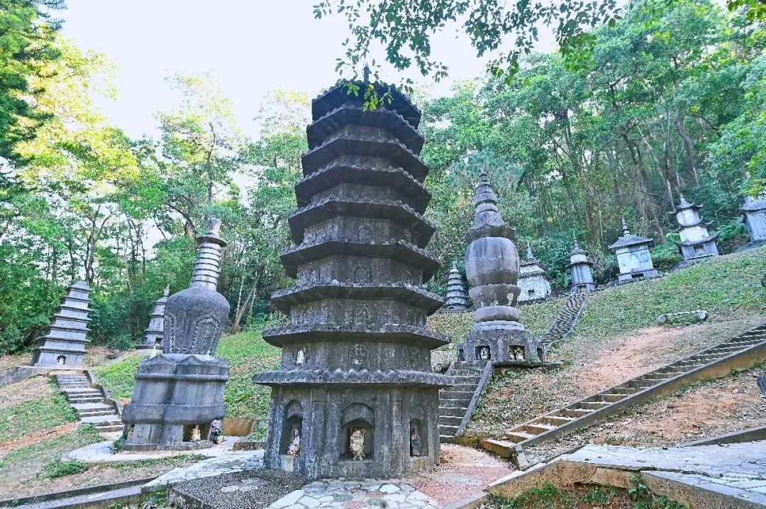 景区内还有一座寺庙,名曰妙觉寺,看规模不是很大,只是大门紧闭不让参观,园方说正在维修,只能在外面走一走,看一看,发现其旁边有一片塔林,有几十座规模大小不一的塔,有点像少林寺的塔林,不过规模小一点,听说这里是电视剧《巴啦啦小魔仙》的取景地之一。