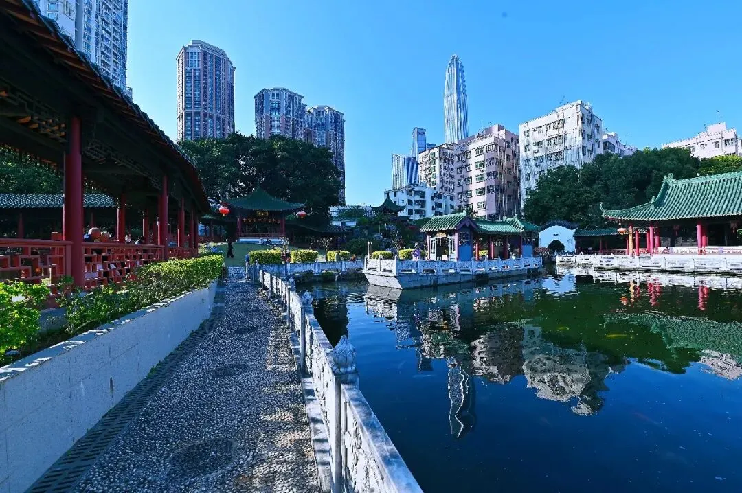 锦绣园位于深圳福田区皇岗村皇岗四街,由皇岗村社区于1998年精心打造占地约2万平米的一座苏州式古典园林,被誉为“闹市中的江南水乡”,它以人工湖为中心,环绕亭台楼阁、假山长廊、拱桥、锦鲤池等元素,形成“一步一景”的雅致氛围,园内四亭(皇达亭、皇兴亭、皇旺亭、皇发亭)和一旱船舫(家和舫)寓意吉祥,是深圳少有的具有完整苏州园林风格且深受市民喜爱打卡的免费网红公园。
