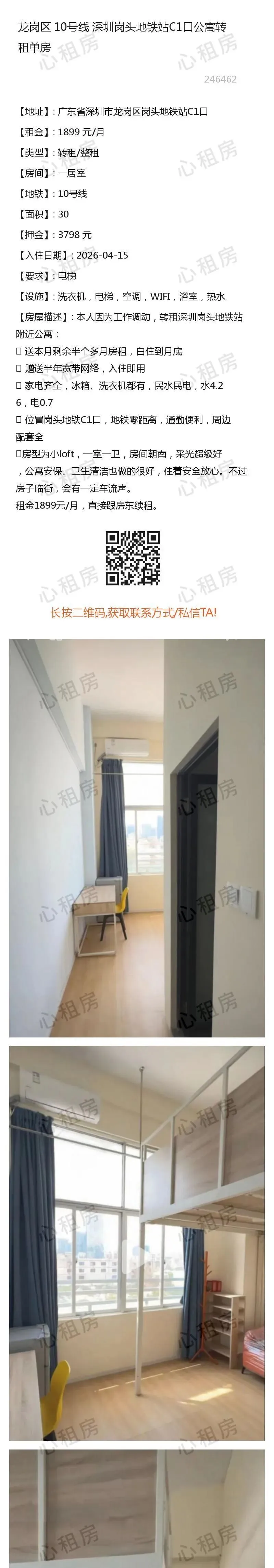 深圳租房【龙岗2则】房源①:10号线深圳龙岗岗头地铁站C1口转租单房1899元/月;房源②:…