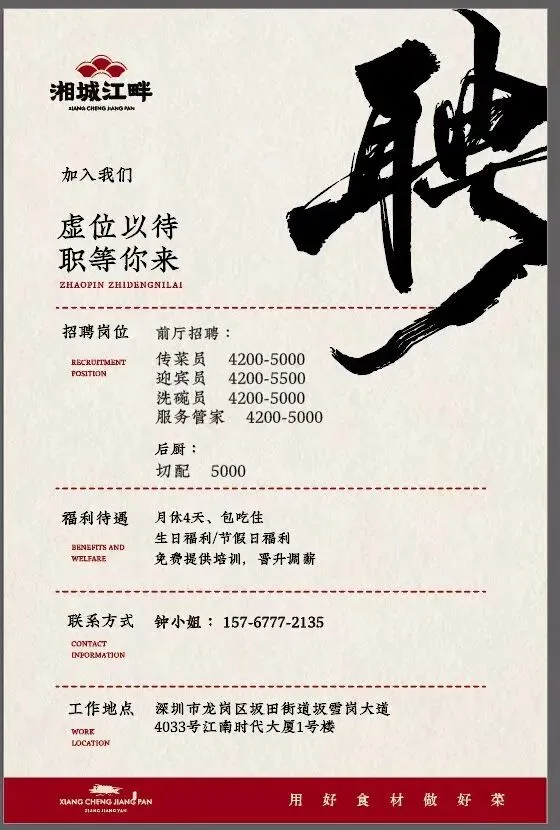 大浪湘菜馆招聘: