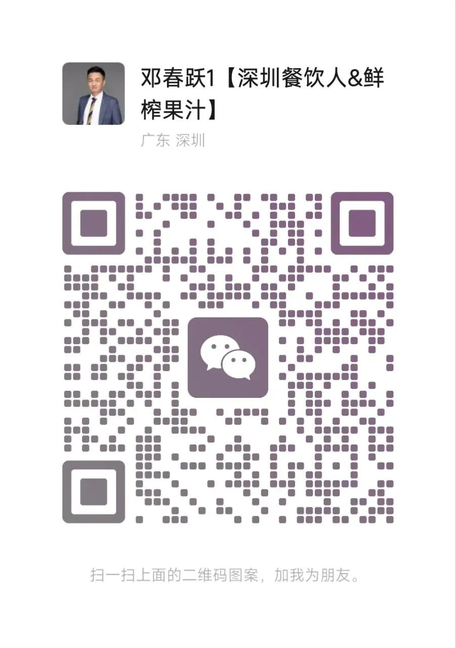 各位餐饮圈的朋友,大家好!我是【深圳餐饮人】社群的发起人,这个社群已经做了10年,真心希望能帮到更多深圳餐饮人。我基本不收费,偶尔收个小红包,也是大家的一份心意。我真正的收入来源是给餐厅供应鲜榨果汁,养家糊口靠它。如果各位店里有鲜榨果汁的需求,请随时找我!感谢大家一直以来的支持🙏