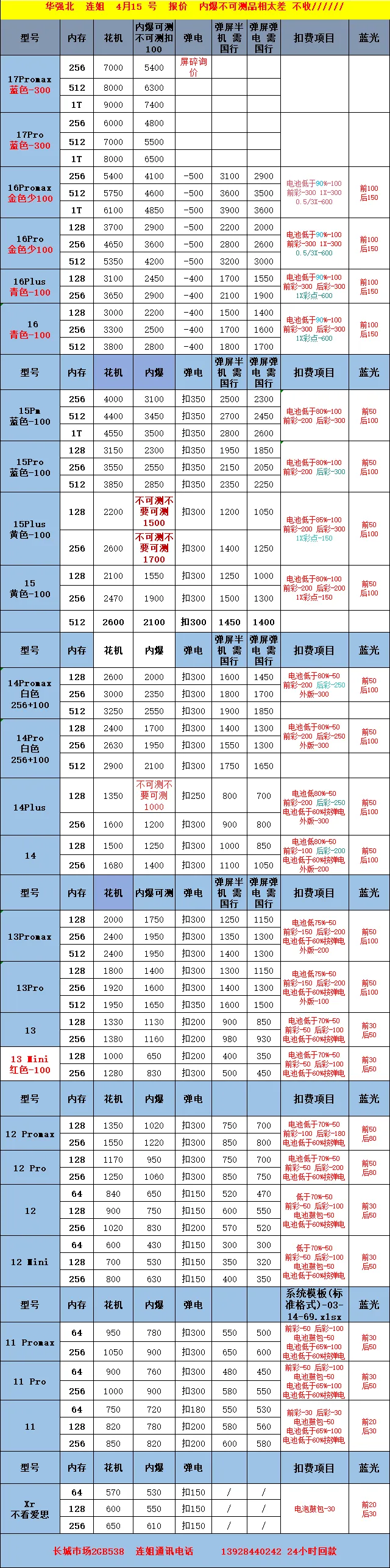 深圳华强北 连姐 长城巿场2GB538柜一手源头,苹果大花机 内爆 回收报价4月15号 收到货2 4小时之内结款
