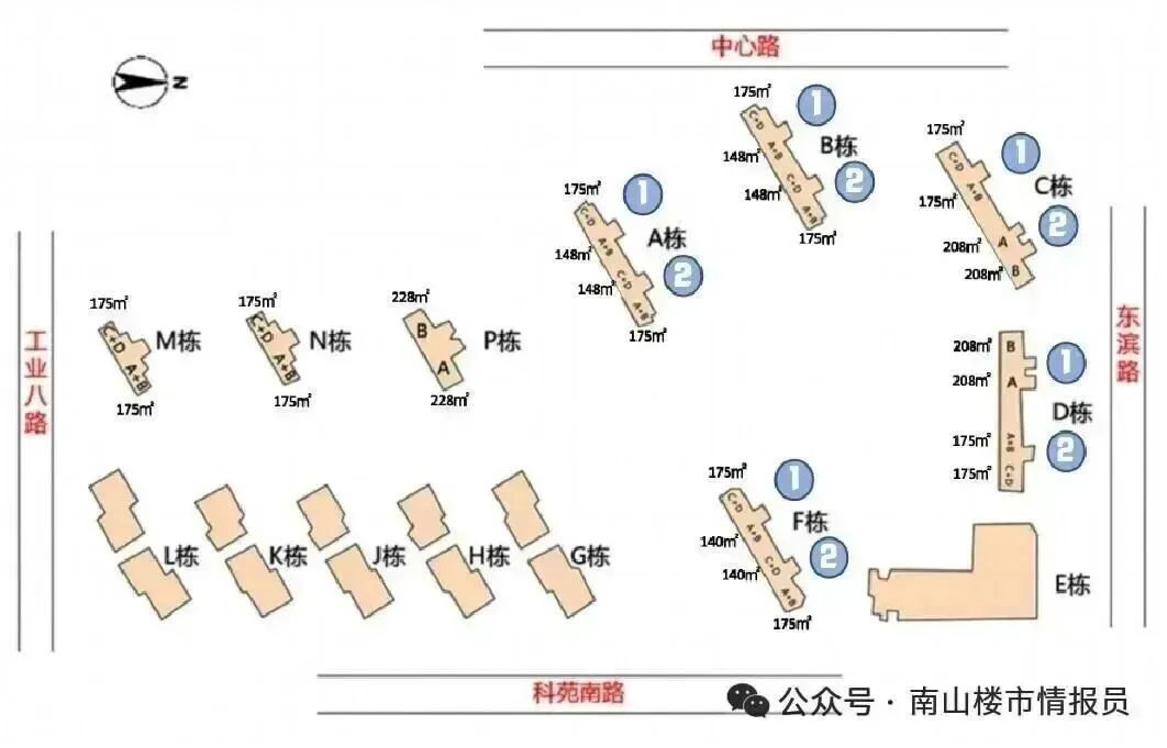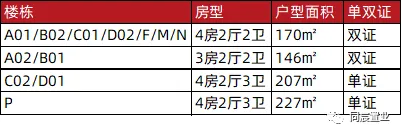 北区:ABCDE栋为一期(29-31层),E栋为写字楼,CD栋的A、B户型为207平的单证,其他栋均是双证。