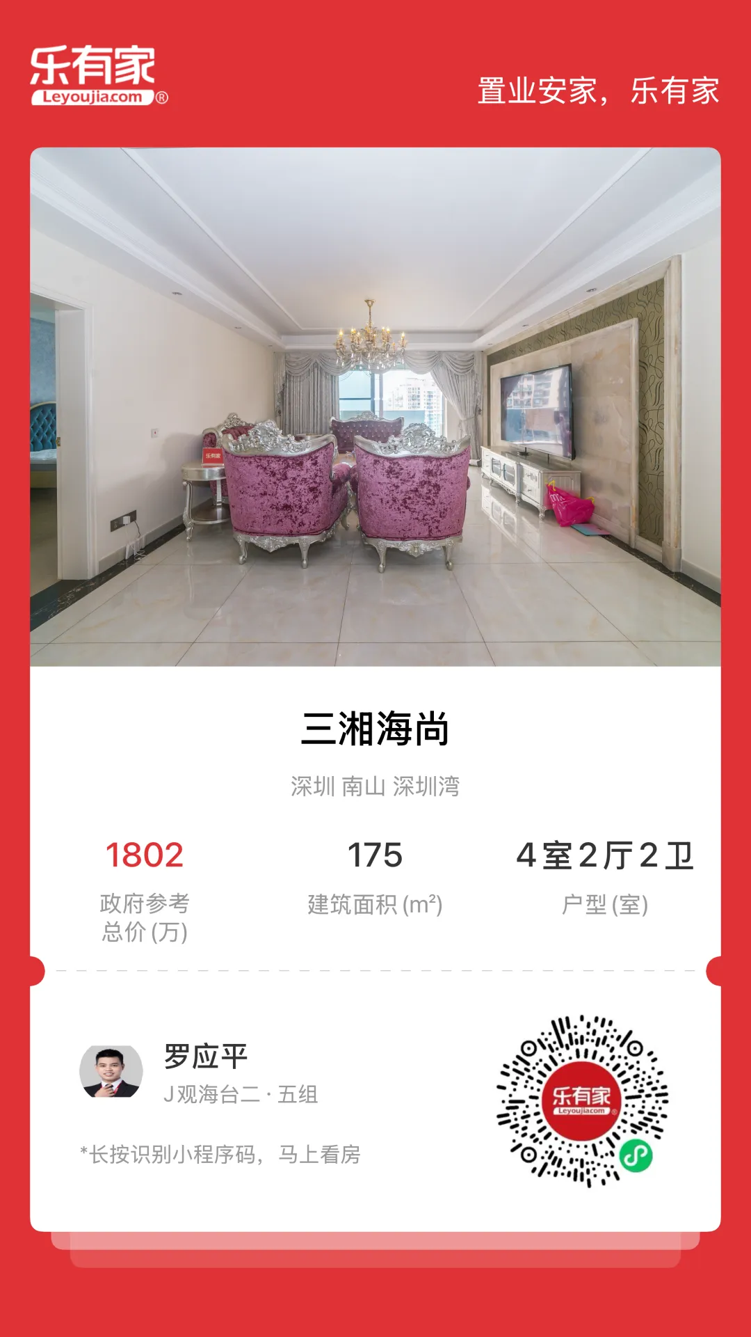 性价比:这是深圳湾第一大社区三湘海尚,水系园林,性价比最高的一套175户型,高层看海景,南北通,热销户型,性价比最高。