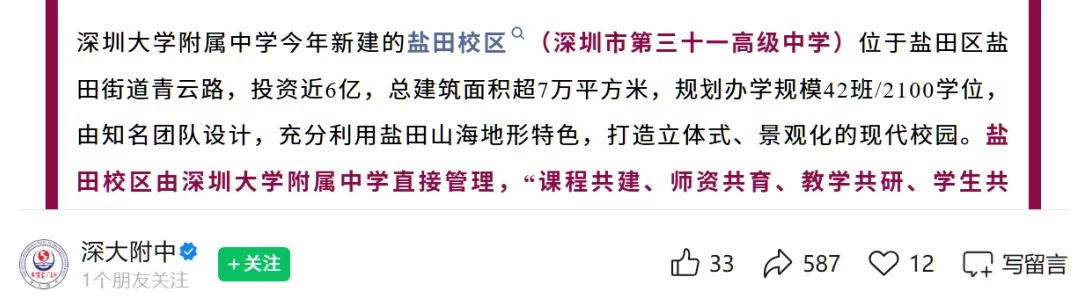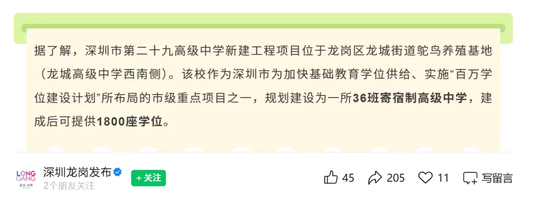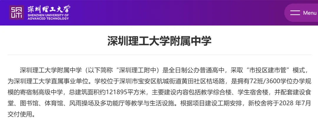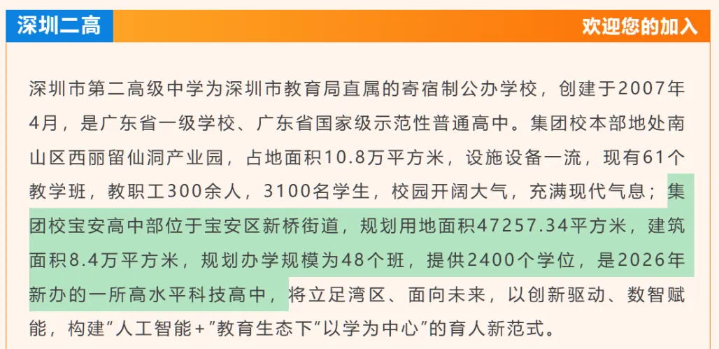 ✅ 学校定位:深圳市 “百万学位建设计划” 市级重点新建公办高中