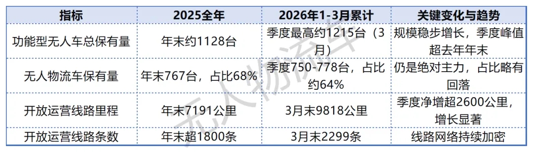 无人物流车是深圳功能型无人车商业化落地最成熟的场景,2026年1-3月数据展现出强劲的增长韧性: