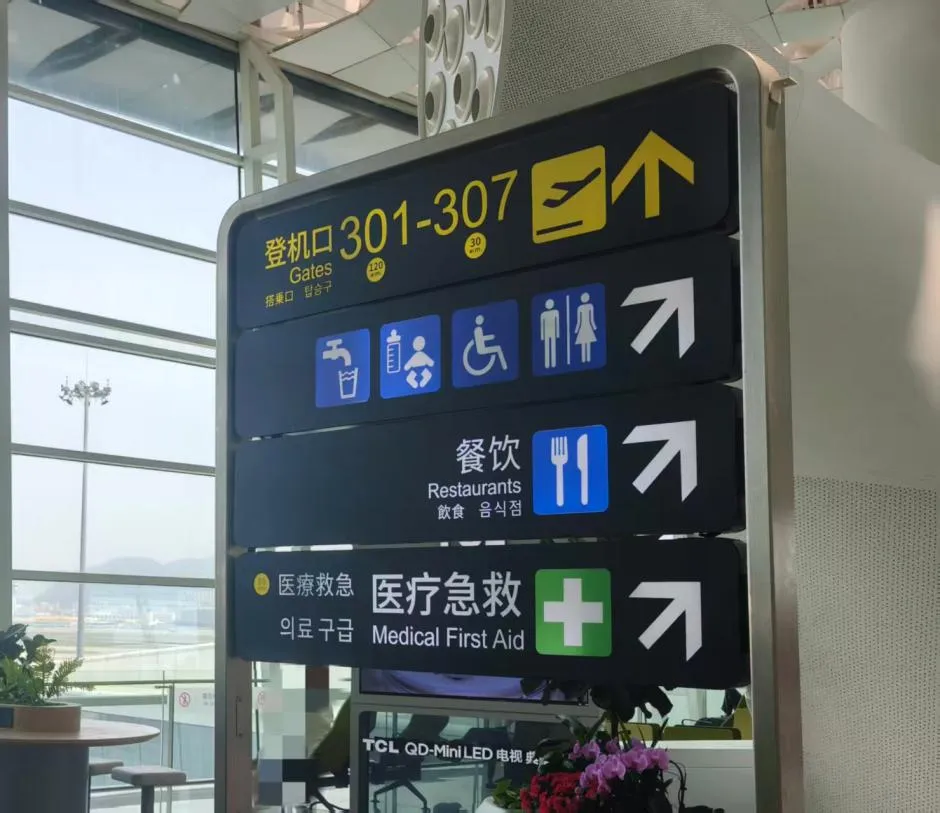 深圳市机场股份有限公司服务品质部经理张翼娜在接受记者采访时表示,在市外办、市交通局的指导下,机场在去年12月启动了多语种标识提升项目,根据国际旅客客群,在国际出发、到达等区域的标识由中英双语升级为中英日韩四语,目前已完成新标识的更换。