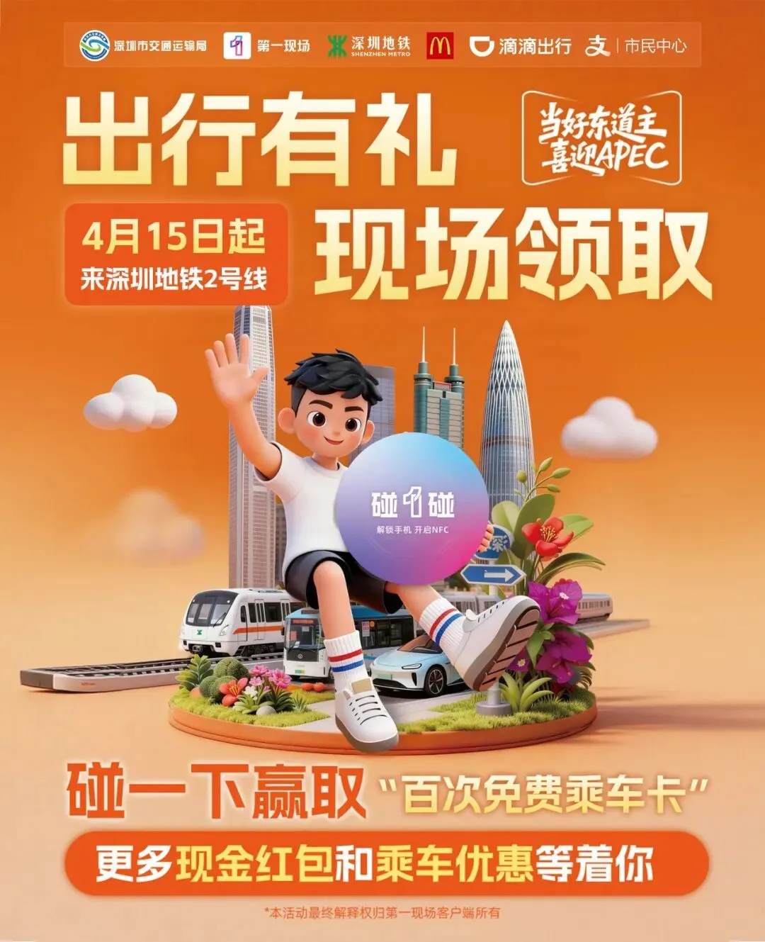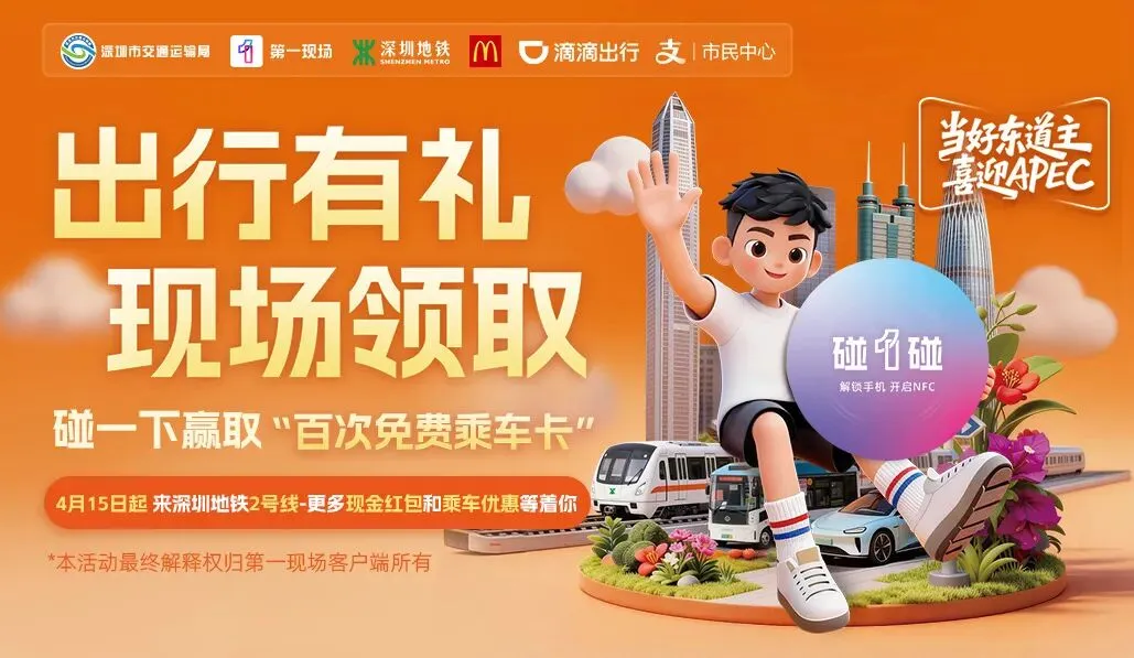 在交通局指导下,第一现场联合深圳地铁,先在2号线试试水,后面会铺到全市所有地铁和公交线路。一句话:让你上班路上“碰”出好运,绿色出行也能有惊喜!