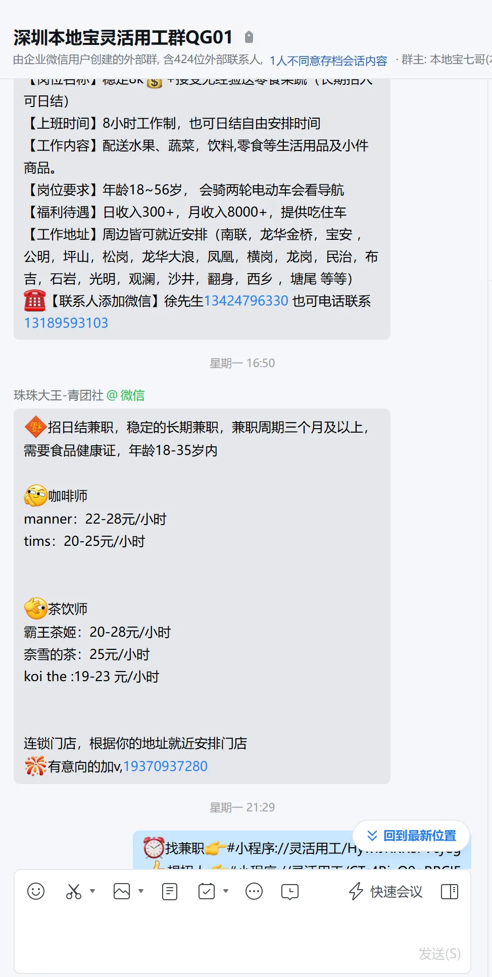 深圳本地宝招聘频道正在通过企业微信群,为市民打造一个 “你身边的灵活用工在线小市场”👍。