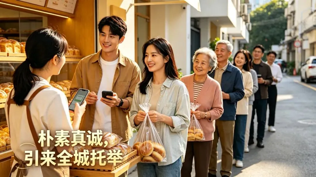 顾客们自发到店支持,线上订单瞬间爆单,街坊邻里排队购买,甚至当地商务局也主动上门,帮她梳理经营问题、优化产品、对接资源。从关门倒计时到重新开门迎客,这家小小的面包店,被无数陌生人硬生生“救”了回来。