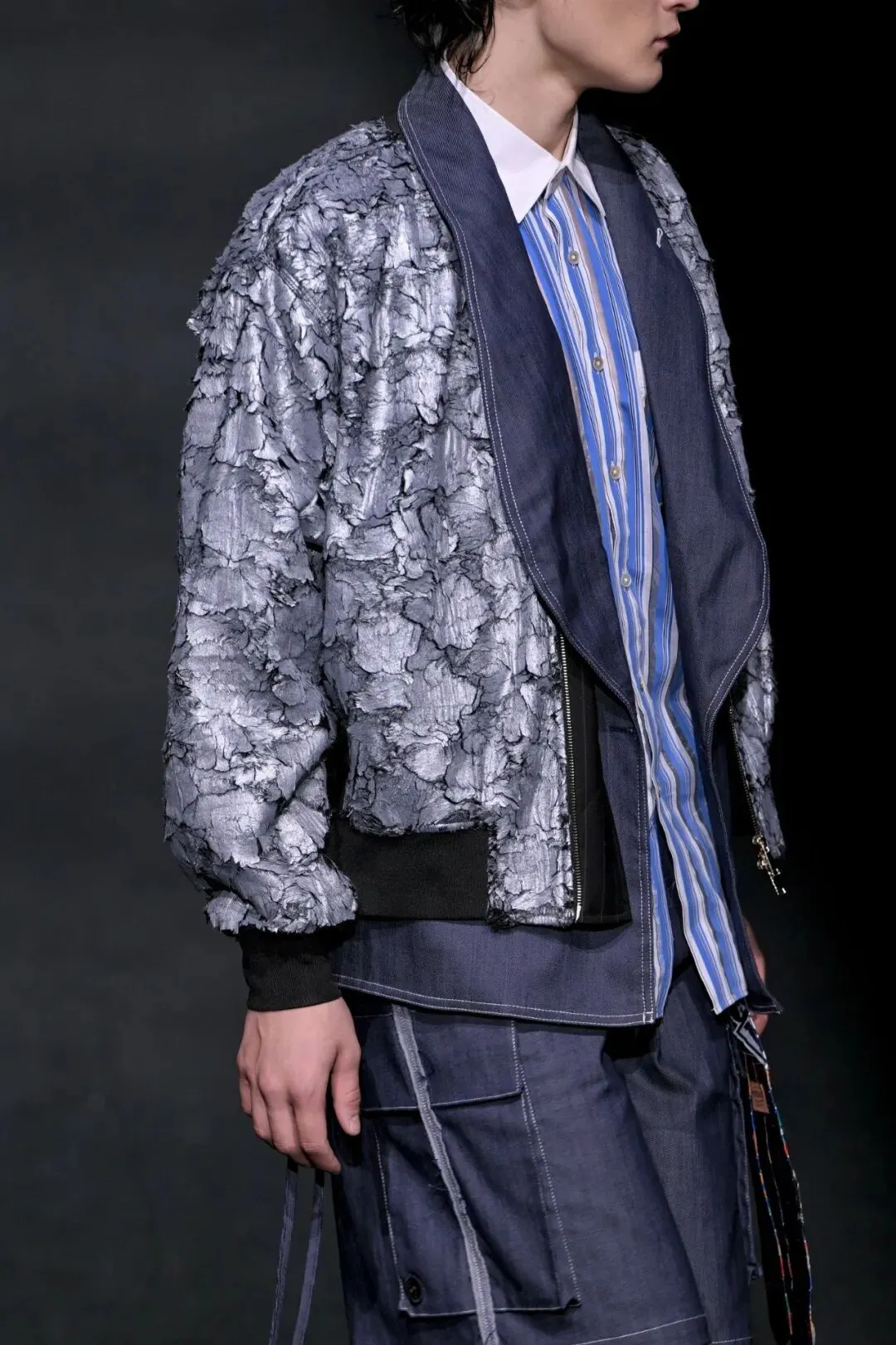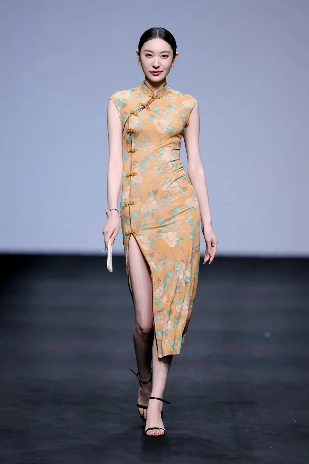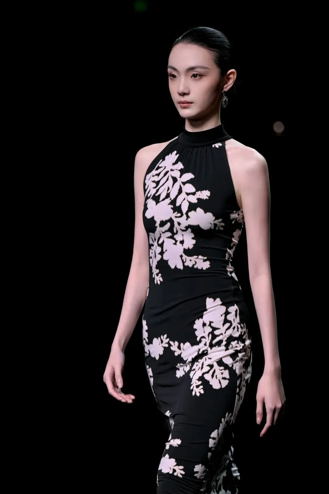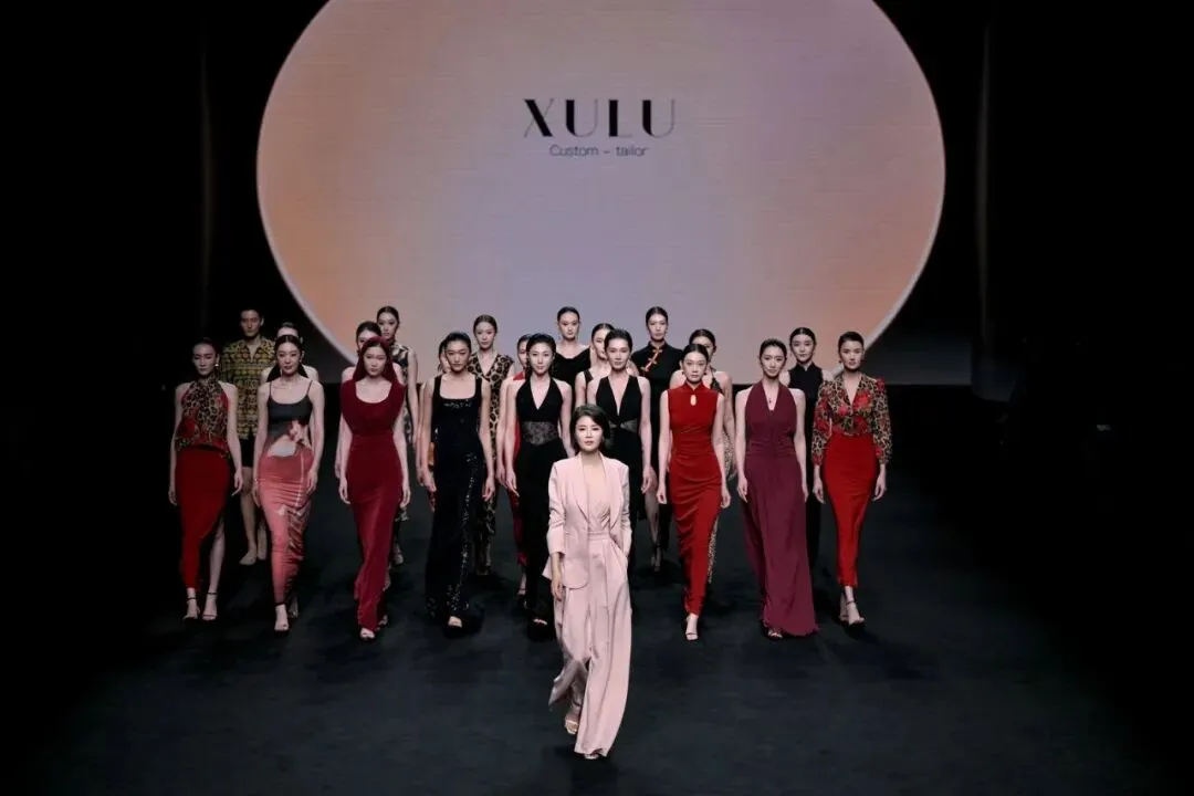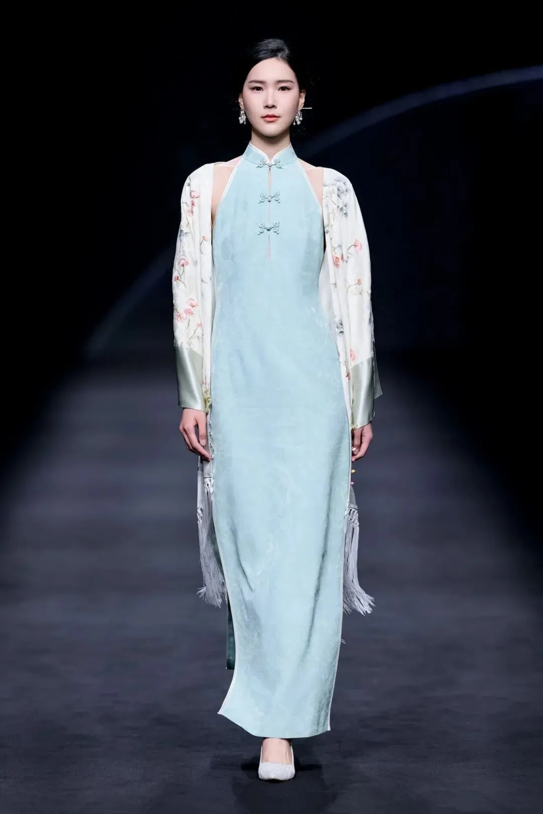 这是一场专属于时装的无声叙事。灯光成为情绪的主语:暖光沉敛时,模特身着传统改良中式,藏旧制风骨;冷光骤转,解构先锋设计登场,破陈规边界;白光舒展,当代锋芒在肩线间绽放。从传统改良中式的工艺沉淀,到解构先锋设计的态度表达——裁去桎梏,变赴新生。