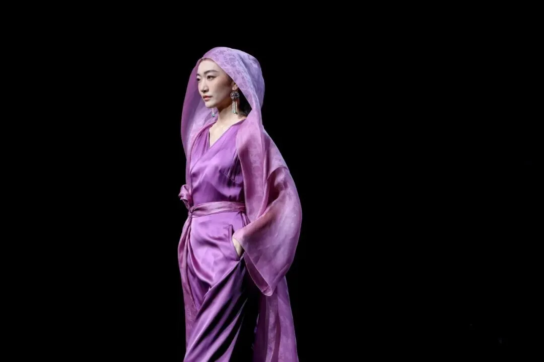 将传统宽袍大袖解构为现代流畅剪裁,光影在褶皱间流转,不张扬却自有光芒。