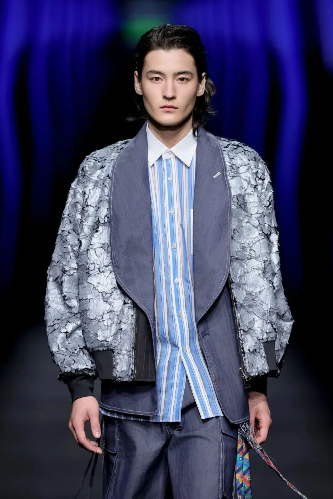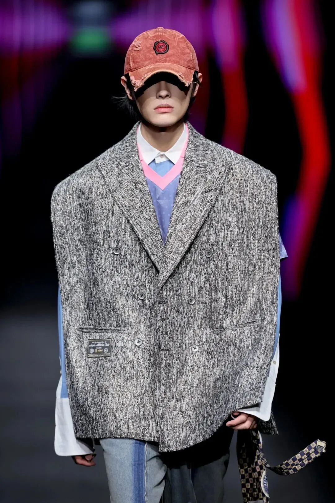 香港品牌Aepel的「Fan Cam」系列——足球球衣图案被重新演绎,运动与时装的边界被彻底打破。“Winner is optional, looking good is a must.”这句信条在T台上格外有力量。