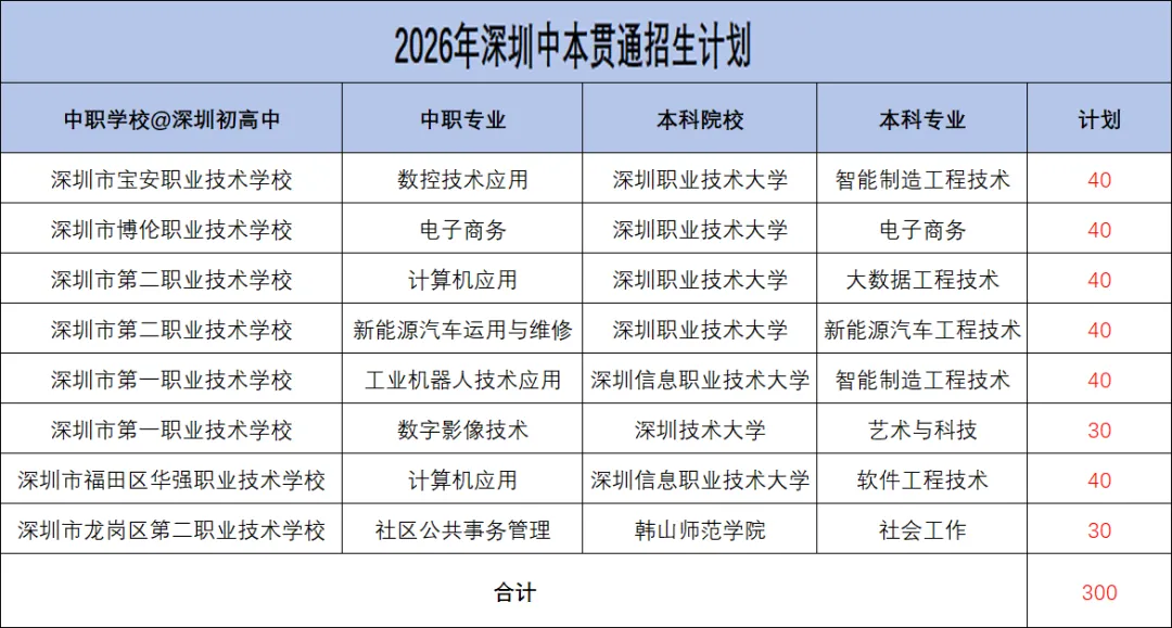 深圳家长必看!2026中本贯通名单官宣!6所中职+8个专业,300个名额,低分也能锁定本科!