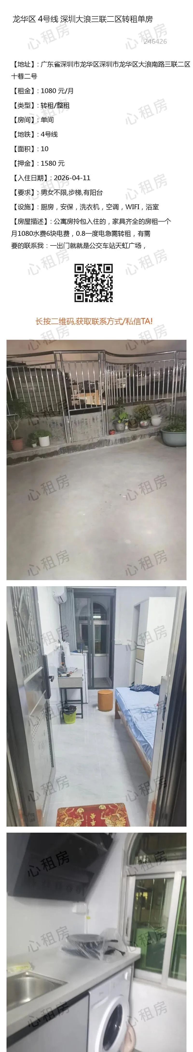 深圳租房【龙华2则】房源①:4号线深圳龙华大浪三联二区转租单房1080元/月;房源②:…
