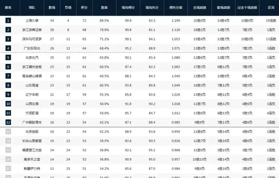现在焦点全在第12名争夺。广州和北控战绩一样,分列第12和第13。北控刚爆冷赢了山西,张庆鹏教练那眼神,我隔着屏幕都能感觉到——“这波必须干回去!” 但吉林主场输给同曦,稍微掉队了。广州赛程略占优,可篮球场上,你永远猜不到下一秒。就像我昨天和老张打牌,他输了一把就骂:“这破牌!明天肯定赢!” 结果第二天真赢了。篮球也一样,没到哨响前,一切都有可能。