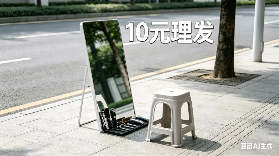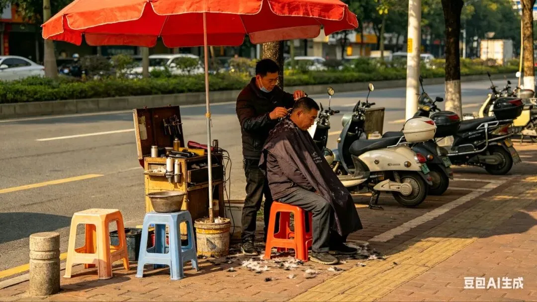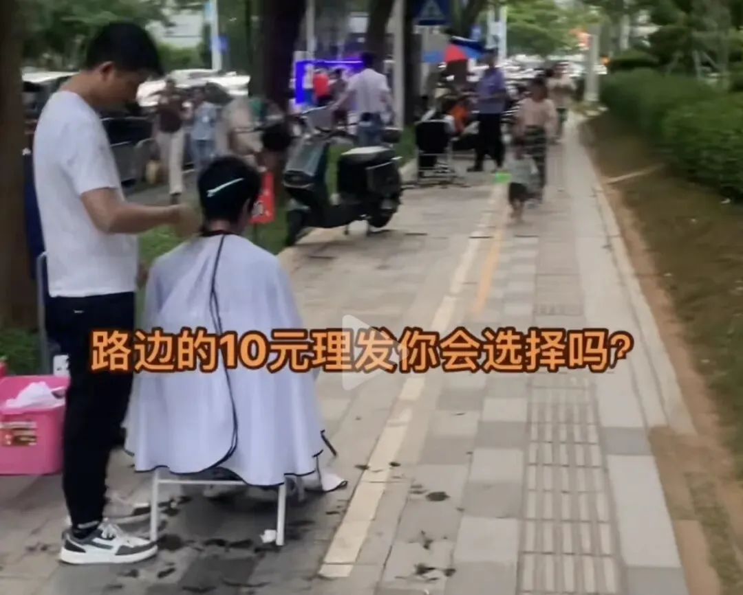 一把剪刀、一张凳子、一面镜子、一桶自来水,再加一辆自家电动车,不用房租装修,零门槛就能开张,这种小生意遍地都是,也道尽了中年人的生存艰辛。