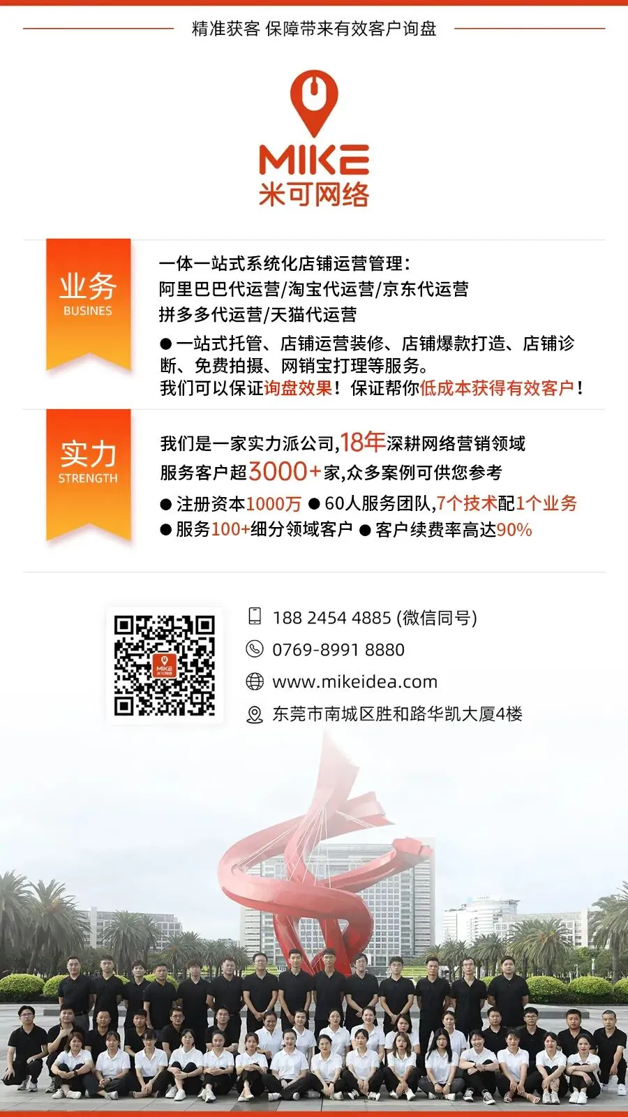 对于深圳工厂而言,专业的深圳1688运营,是依托产业优势、抢占跨境流量红利的关键。米可网络深耕深圳市场,专注工厂制造业深圳1688运营服务,熟悉深圳产业带特点和1688平台规则,深谙跨境运营逻辑。我们会结合深圳工厂的产业优势,定制专属深圳1688运营方案,从店铺定位、产品优化、跨境流量对接,到询盘转化、客户维护,全程专人对接,帮深圳工厂突出差异化竞争力,打通国内与跨境双渠道,轻松抢占深圳1688运营流量高地,实现订单持续增长!