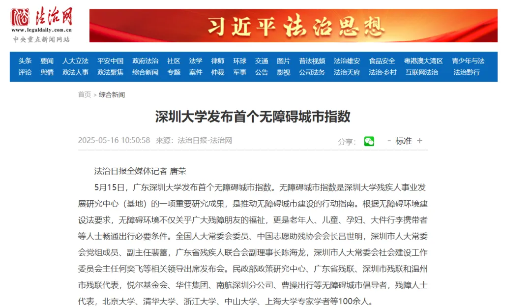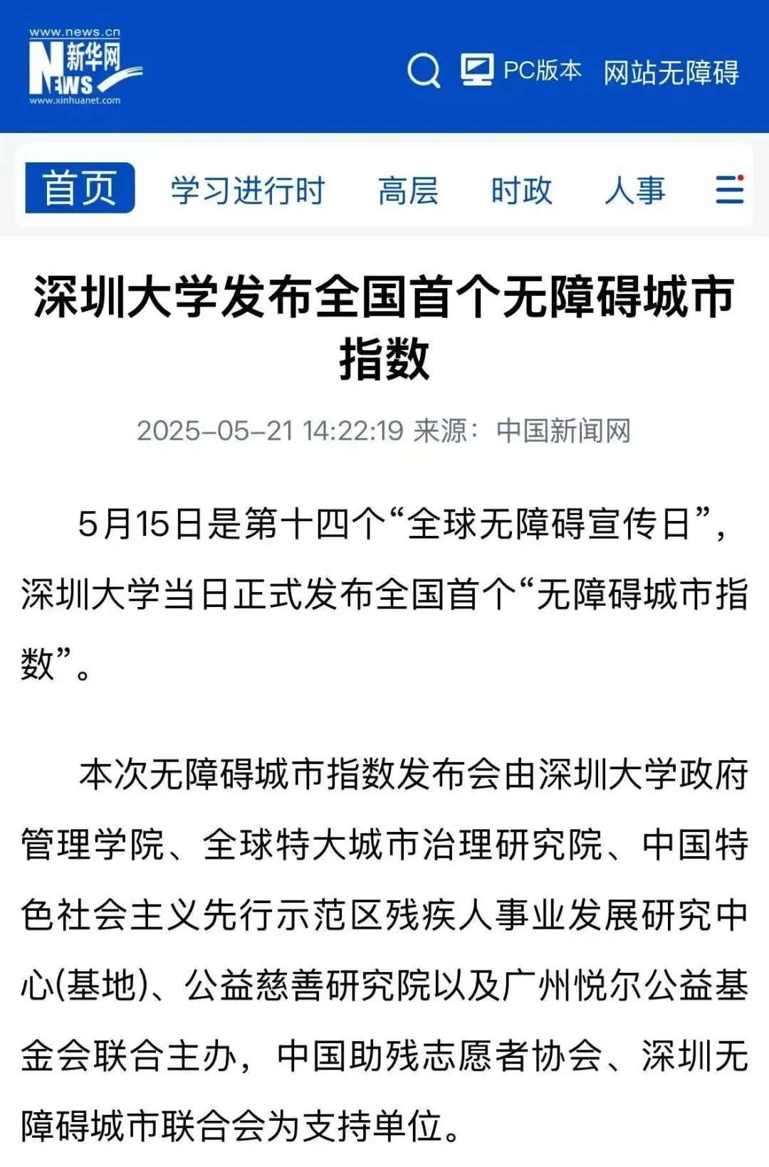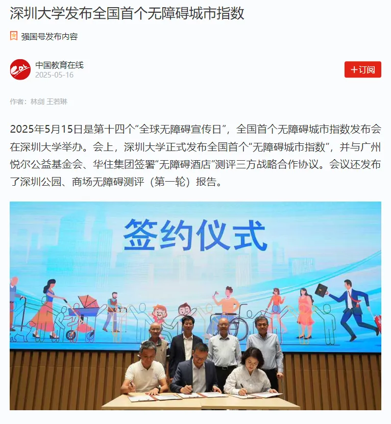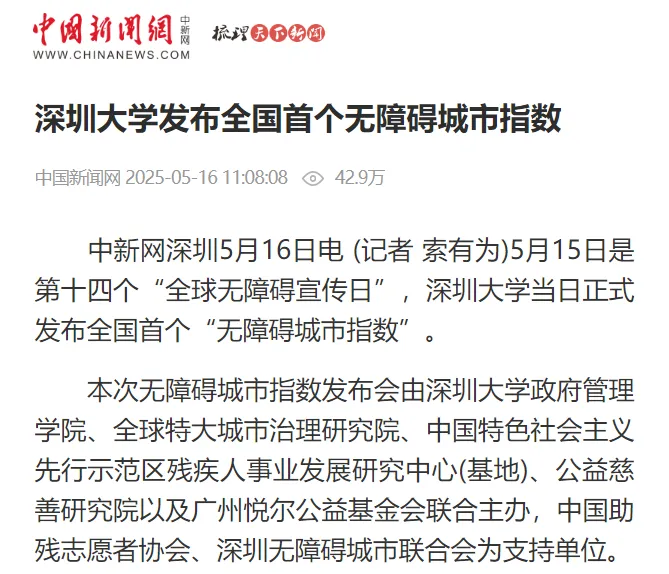 本次无障碍城市指数发布会由深圳大学政府管理学院、全球特大型城市治理研究院、中国特色社会主义先行示范区残疾人事业发展研究中心(基地)、公益慈善研究院以及广州悦尔公益基金会联合主办,中国助残志愿者协会、深圳无障碍城市联合会作为支持单位。