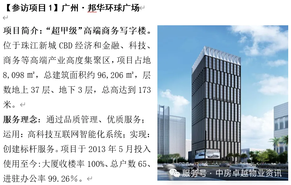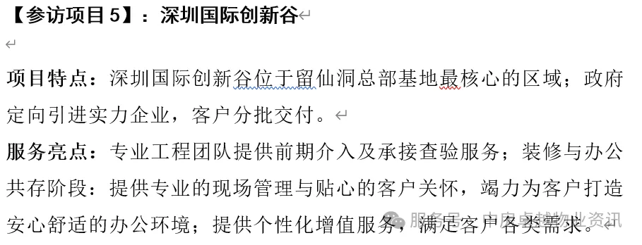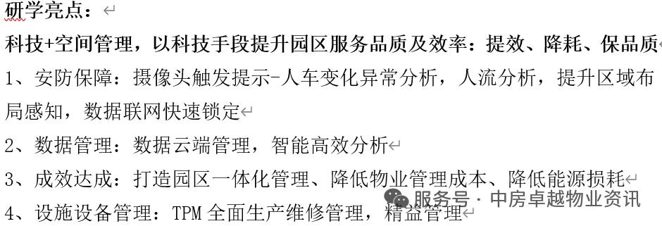 1、聚焦广深核心项目多维对标:研学重点关注当下市场租赁困难情况下,各楼宇在招商、现场品质打造、物业管理费收缴、智慧科技管理、降本增效等企业关心的问题。参观全程由专家老师带领讲解,并邀请标杆企业管理负责人座谈交流,答疑解惑。2、参观考察主要围绕:绿色物业及节能减排、现代物业信息化智能平台建设、高端住宅特色化服务、低碳能源EPC管理模式、AI智能物业与数字化管理、园区智慧安防体系建设、停车场节能管理、产城融合创新实践等要素展开考察,寻找适合项目的最佳路径。3、研学模式升级、实操落地:拒绝“走马观花”看皮毛,采用:座谈交流+现场参观+项目交流+解决问题的“沉浸式”创新研学方式。4、课程采用:座谈交流+现场参观+项目交流+解决问题的全面创新研学方式。三、【考察亮点】