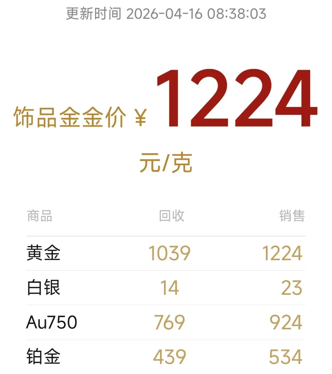 >【04.16】深圳水贝黄金每日最新金价!小涨