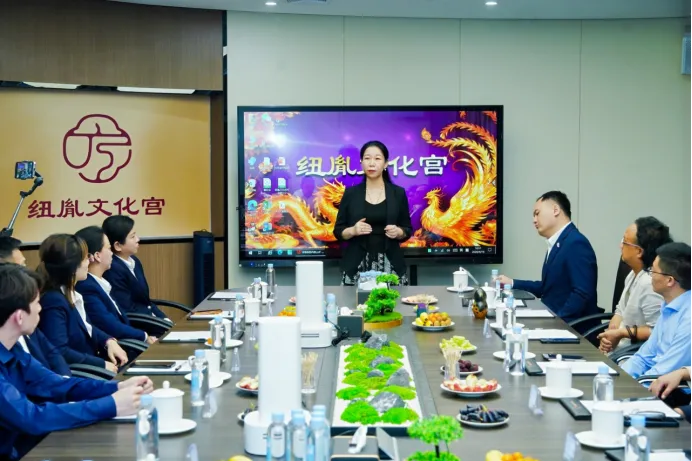 考察期间,商会领导一行实地参观了纽胤文化宫办公区域、文化展示空间与文化运营中心,近距离感受文化宫在“文化+科技+人才”融合发展中的文化实践,详细了解文化宫在传统文化传承、特色文化挖掘、文化IP打造等方面的布局,重点观摩了纽胤文化宫在文化运营、文化资源整合、文化活动创新等领域的丰硕成果,对文化宫以科技赋能文化传播、以专业凝聚文化发展动能、深耕文化领域的探索方向给予高度认可。