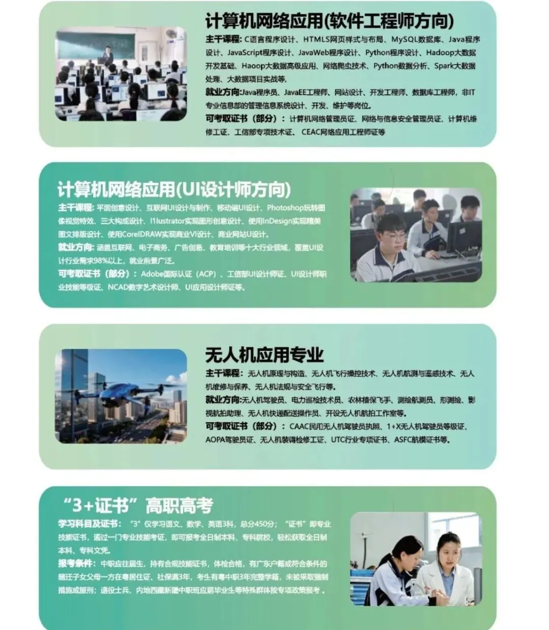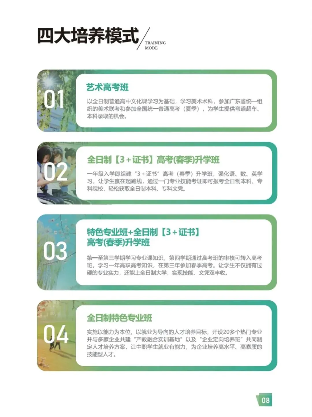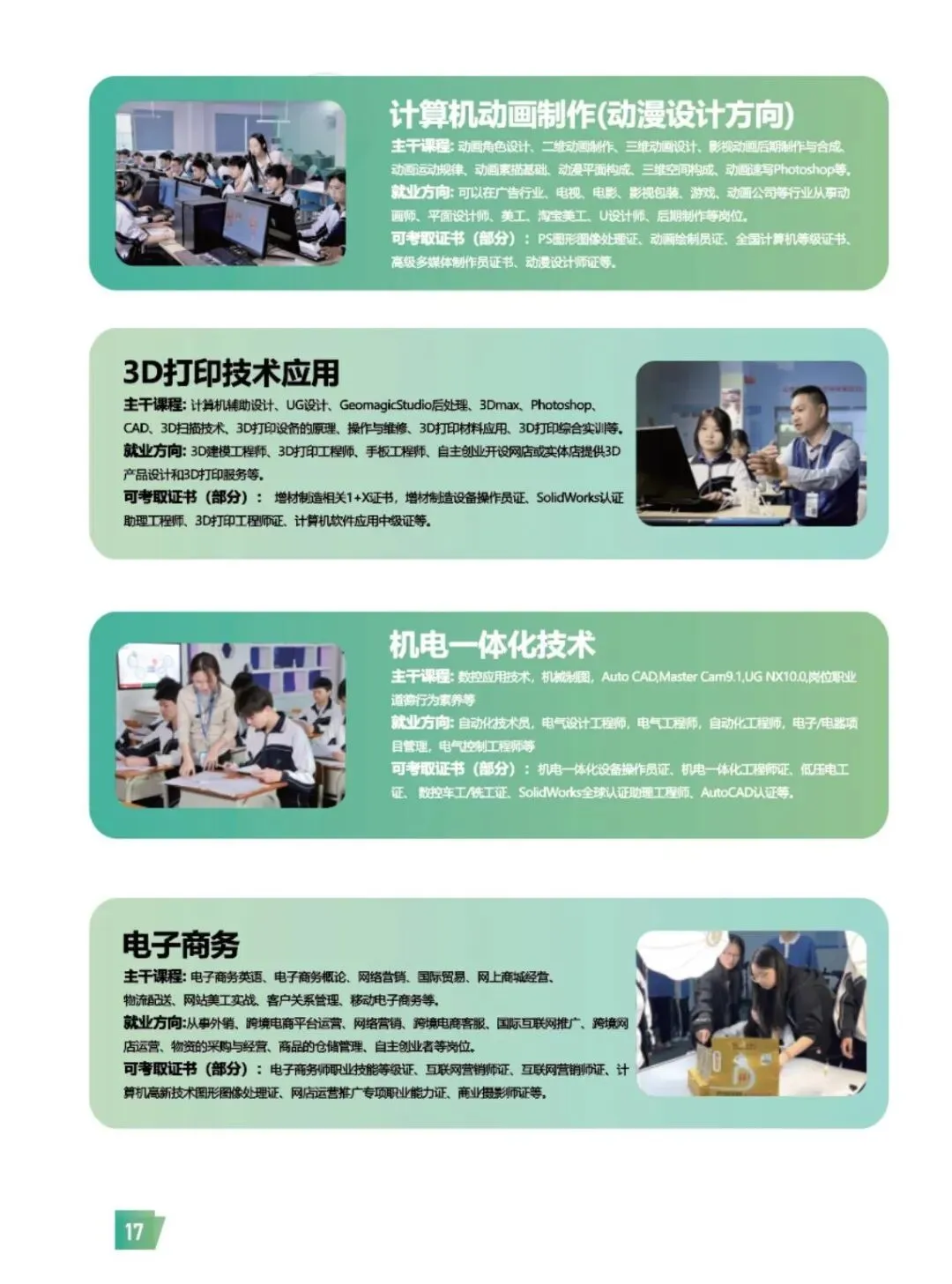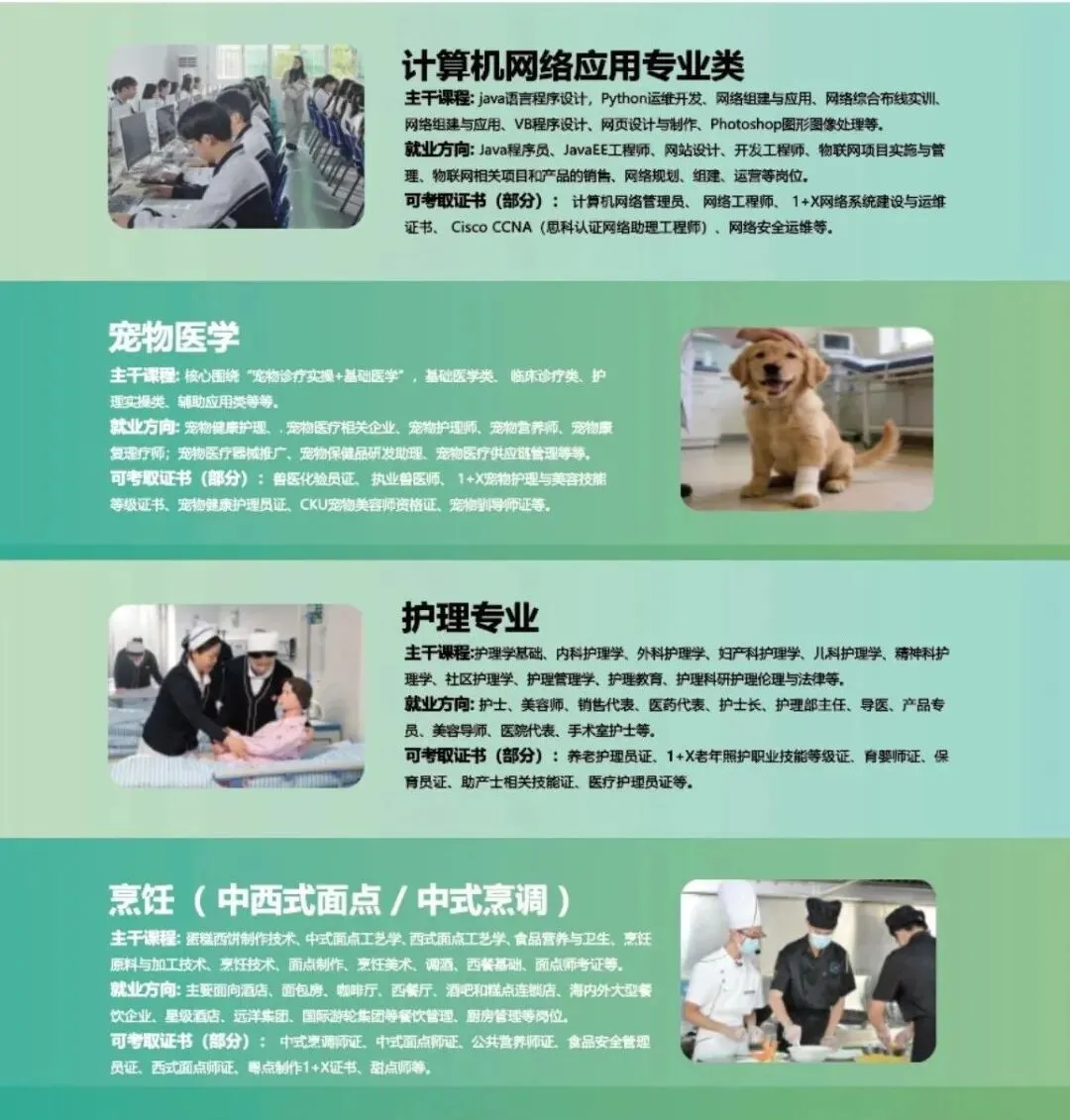 学校拥有200余间现代化教室,每间教室均有空调、投影仪、摄像头等现代化设施,以满足教学需要。学校有教学用计算机2000余台,其中电子商务实训平台共有1000多个机位,可供1000多名学生同时上机实训。平面设计、动漫设计、室内设计专业拥有高配置计算机设备500余台。此外,学校还建有汽车维修、中西面点、中式烹饪、工业机器人、3D打印技术、跨境电商、幼儿教育、护理、舞蹈表演等十余个配套完善、功能先进的实训中心,为同学们专业技能的学习和训练,提供了有力的保障!