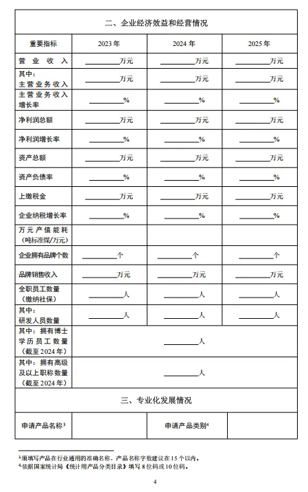 2.坚持专业化发展。从事相关细分产品制造领域的时间达到5年及以上,属于新产品的应达到3年及以上。新产品是指企业近3年研发上市且无法归入国家统计局《统计用产品分类目录》的产品。(在https://www.stats.gov.cn/sj/tjbz/tjypflml/2010/index.html查询)
