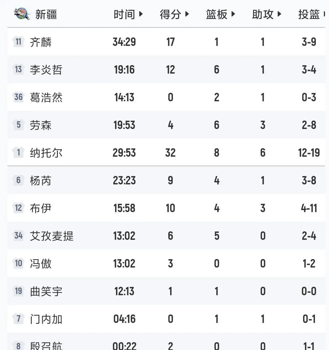 如果说深圳有多狂喜,那新疆就有多悲凉。 主场作战,首节轰下39分,一度领先13分,所有人都以为新疆要绝地反击。 但第二节单节仅得13分,比首节足足少了26分,攻防两端全面崩盘。 纳托尔拼了老命,19投12中、三分10中5,砍下赛季新高的32分8篮板6助攻,但依然无力回天。 四名外援得分加起来还比不过史密斯一人,这仗怎么打?