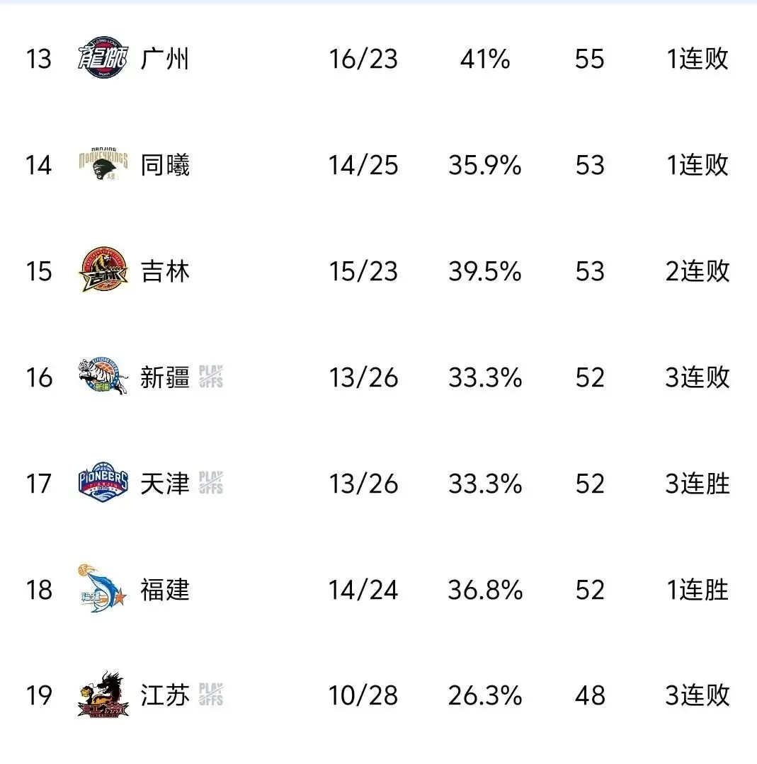 山东四连败“保八”告急,辽宁两连胜看到希望