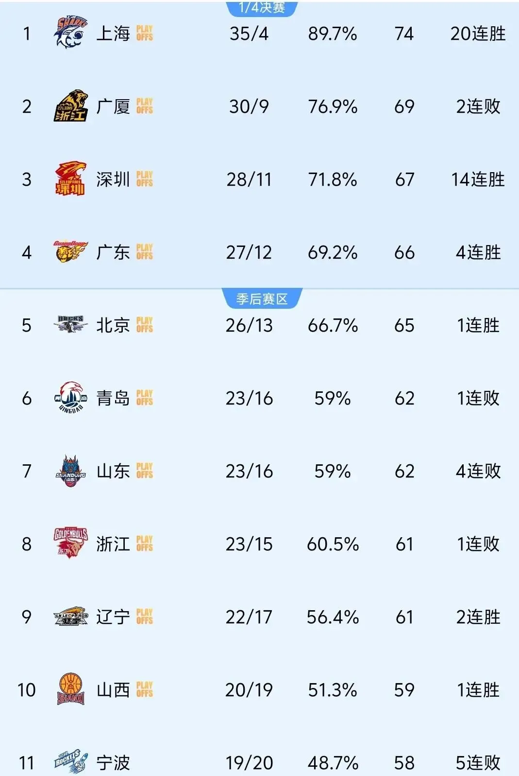 这位CBA生涯第800次出场的传奇老将,在第四节新疆将比分追到只差2分的关键时刻,弧顶连中两记三分球,直接把分差拉开到8分,彻底杀死了比赛悬念。 贺希宁和王浩然两大本土核心全场加起来15投2中只得到5分,要不是周鹏站出来,深圳这波14连胜真悬了。赢下这场比赛后,深圳队战绩来到28胜11负,成功超越广东和北京,重返积分榜第三。 14连胜,客场7连胜,这支深圳队的状态,简直可怕。