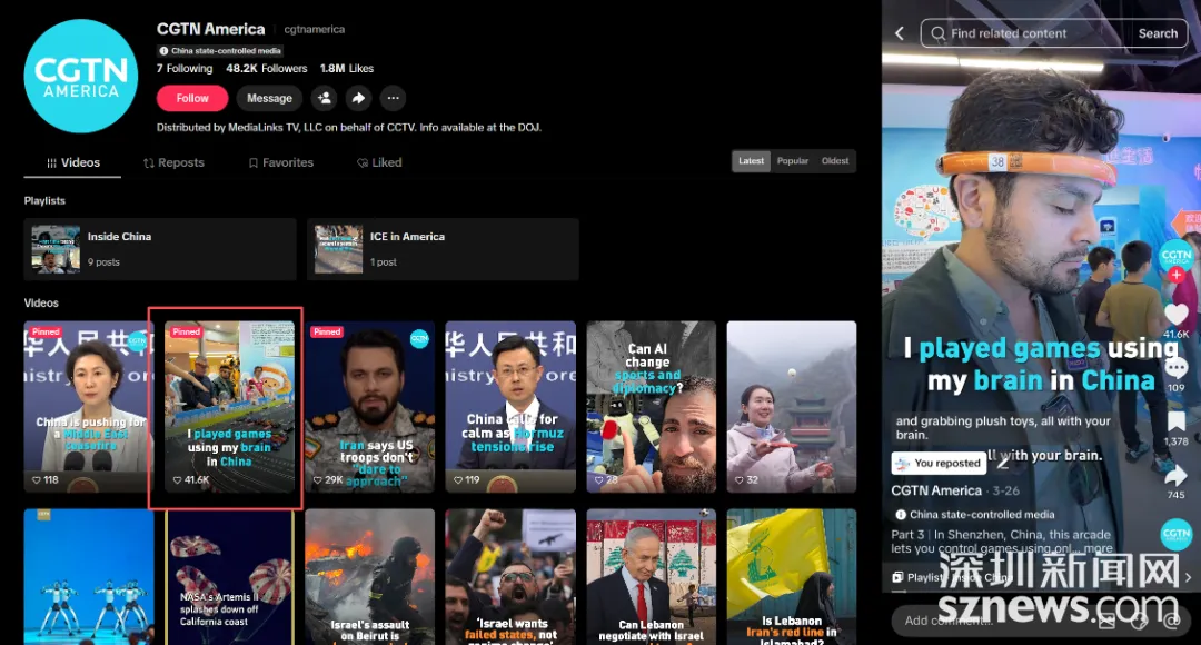 “控制水流、赛车、抓娃娃……这些游戏,用意念就能操纵!”近日,中国国际电视台(CGTN)海外社交媒体账号(Facebook、X、TikTok)发布的一条短视频,让全球网友“云”体验了一把深圳脑机接口技术应用的魅力。
