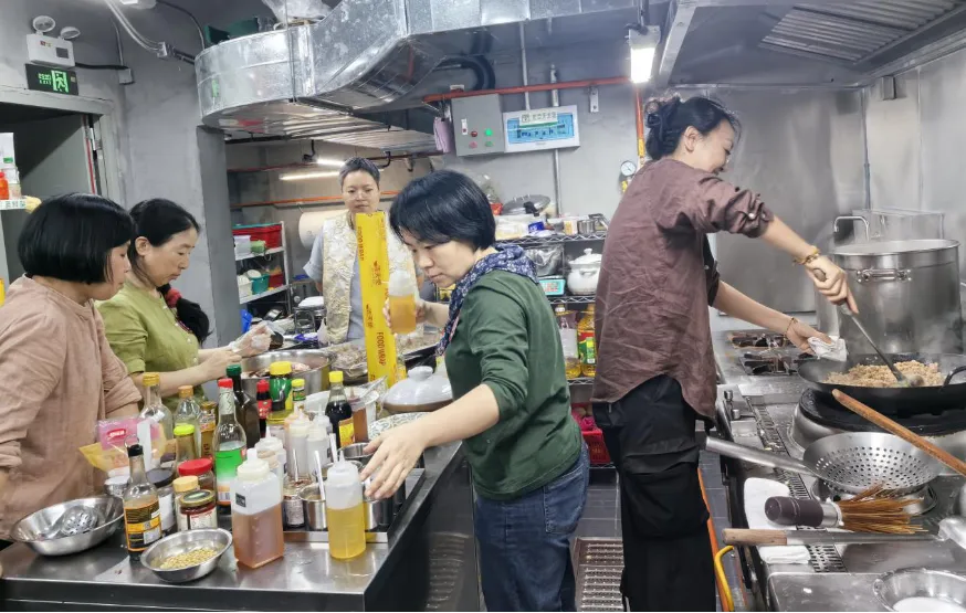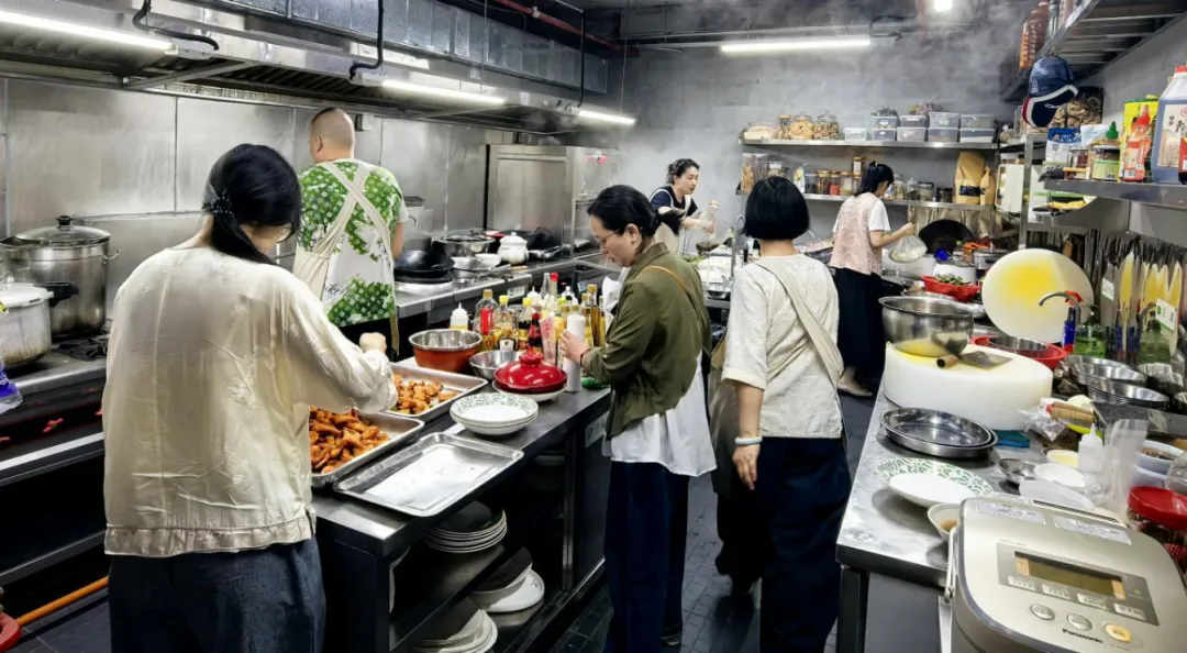 老师讲戏曲文武场里没有哪一位像西方交响乐团里的指挥,但并不是没有指挥。那个指挥就是不管文戏武戏、台上的人是唱是念,或者角儿上没上台,那一直没停下来的鼓。鼓师盯着角儿,其他人盯着鼓师,各在其位万象历然。珊珊顾着大局,手里一直没停,带着众多姐妹在偌大的一个专业厨房洗菜切配、煎炒蒸煮,一气周流热火朝天,完成了这六天的一日三餐几大席。