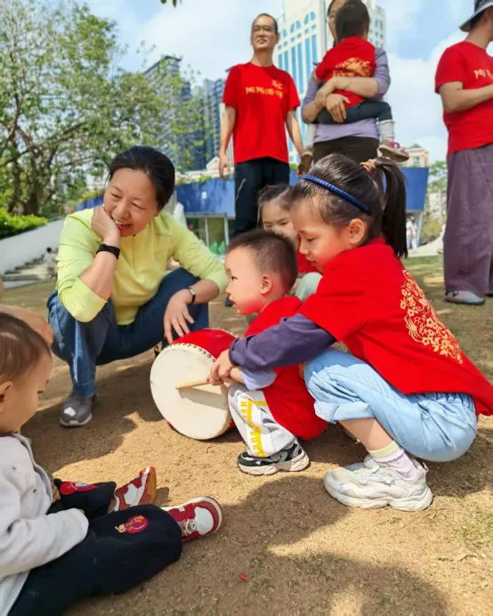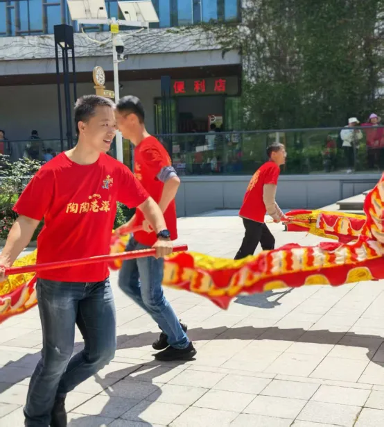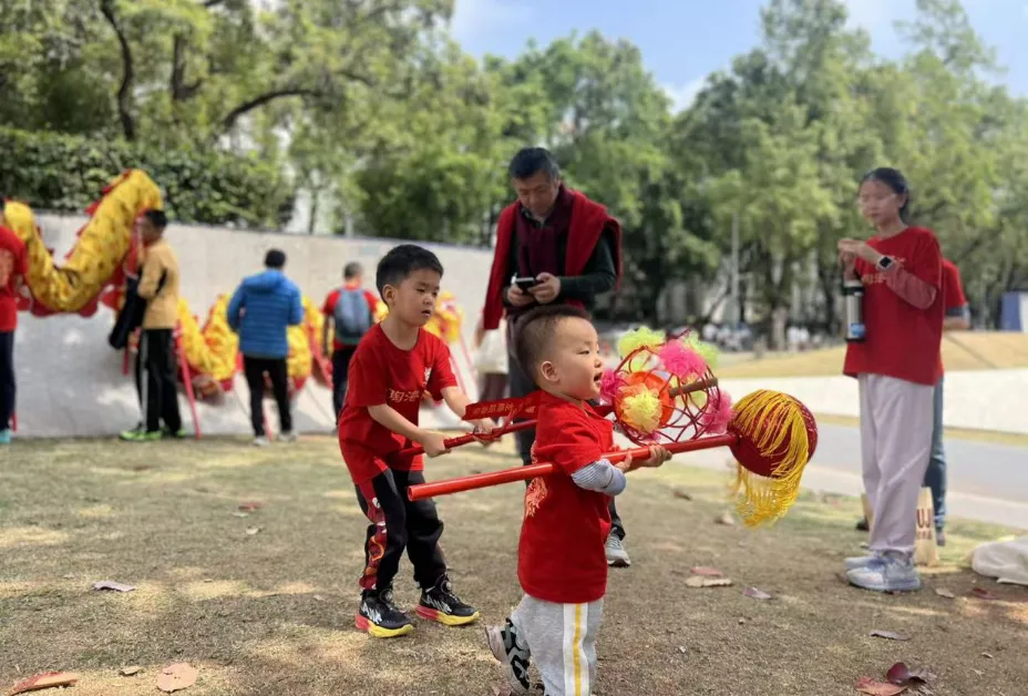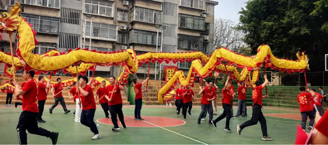 锣鼓喧天,龙身在阳光下翻飞,爷们的喊声震天。四十多位爷在广场上奔跑腾跃,龙有了爷们的托举,在腾飞,在交错,在盘旋。临时组队的舞龙爷们和鼓乐队娘子们,从未有过一次合练,也能同频共振。场面壮阔,看得人心里汹涌澎湃。大湾区广州、珠海、深圳的三条龙,每逢大事必聚首,这份无需言语的默契,正是礼乐文明里,大家心往一处想、劲往一处使的最好证明。