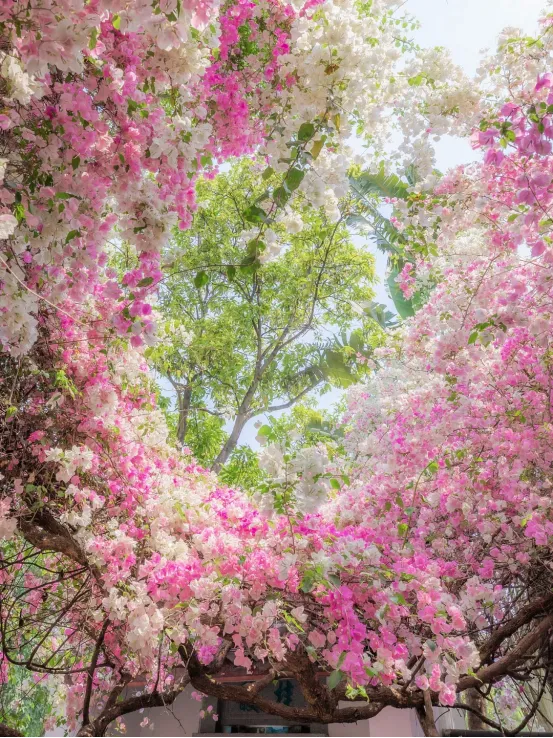 三月深圳,花开满城。那满街的姹紫嫣红,让人心生欢喜。那些聚拢的花瓣,最终织就成串串花帘、堆堆花浪,在阳光下闪着光泽。仰头望去,便是整个春天!