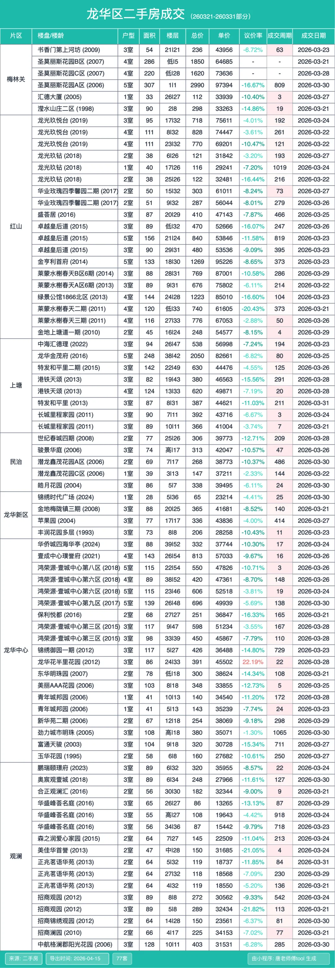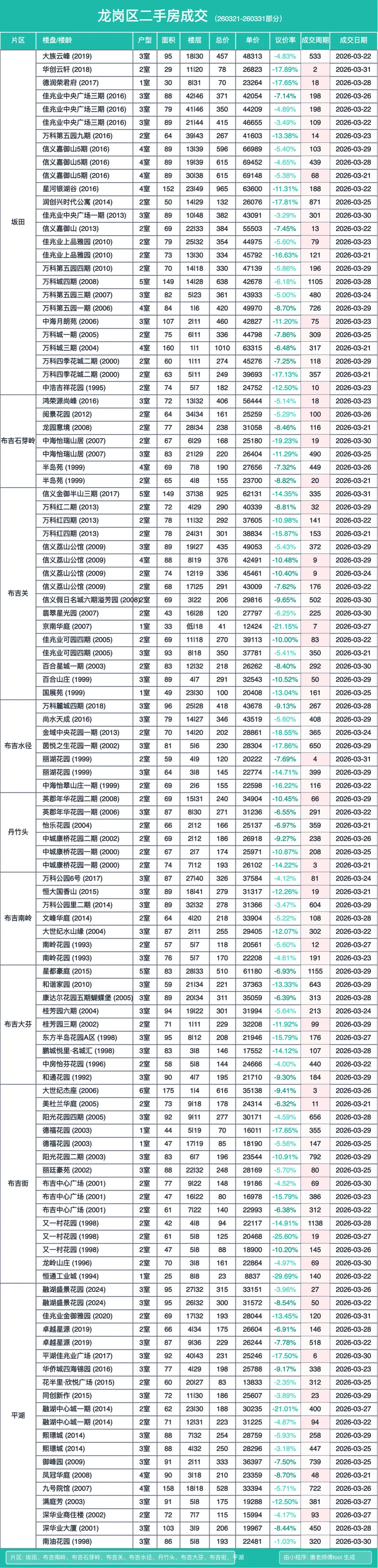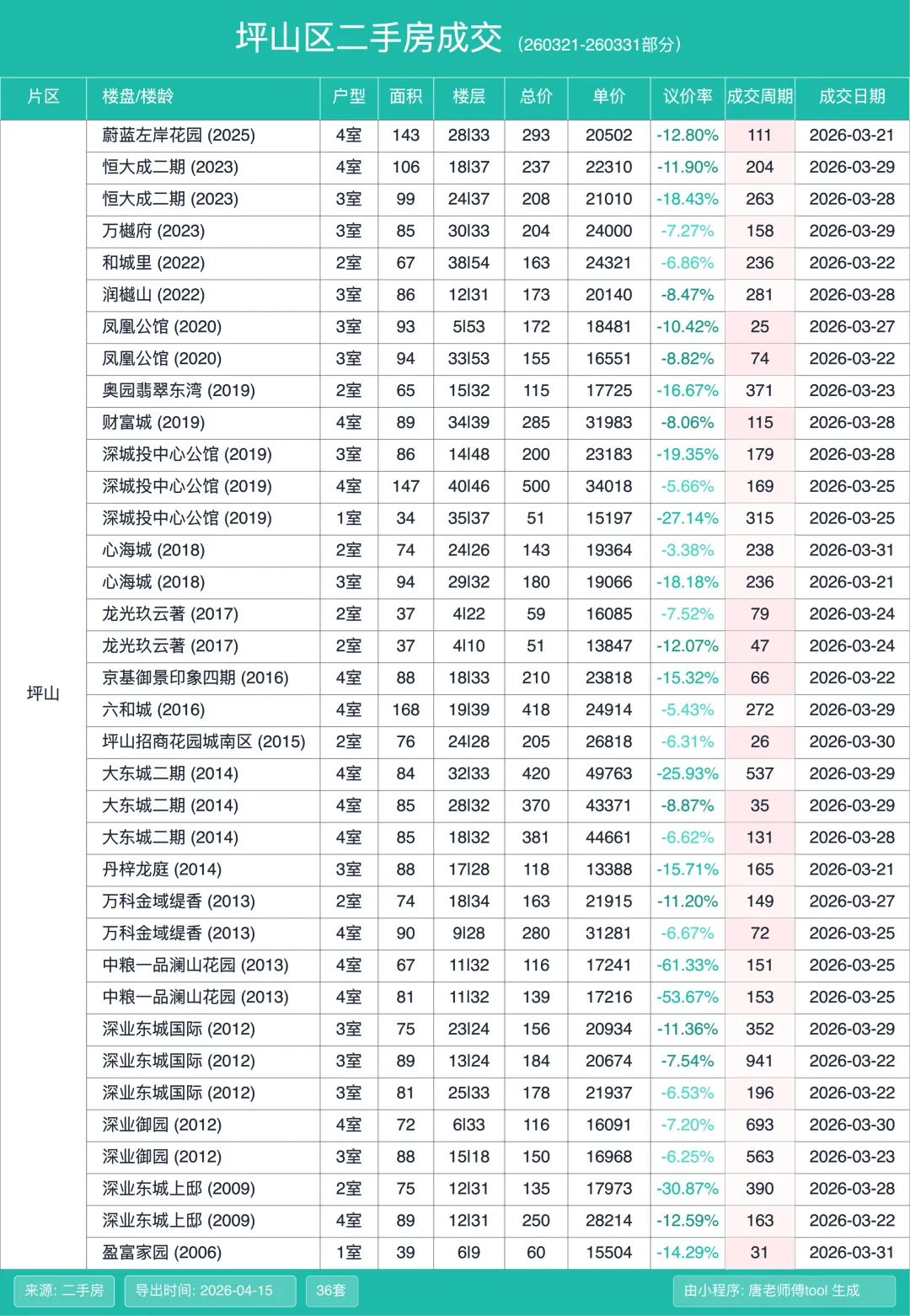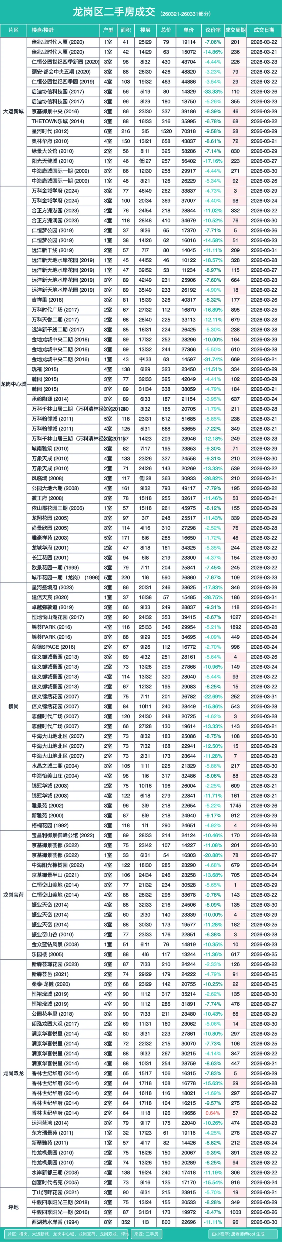 按惯例来给大家分享深圳二手房的成交明细,这次的统计周期是3月21日到3月31日这个期间的数据。