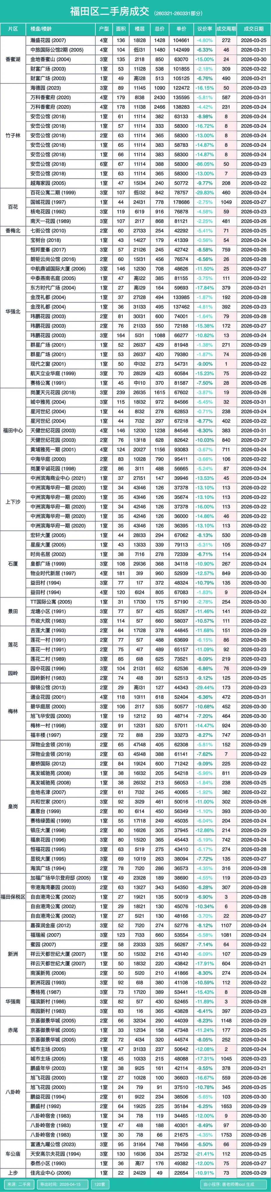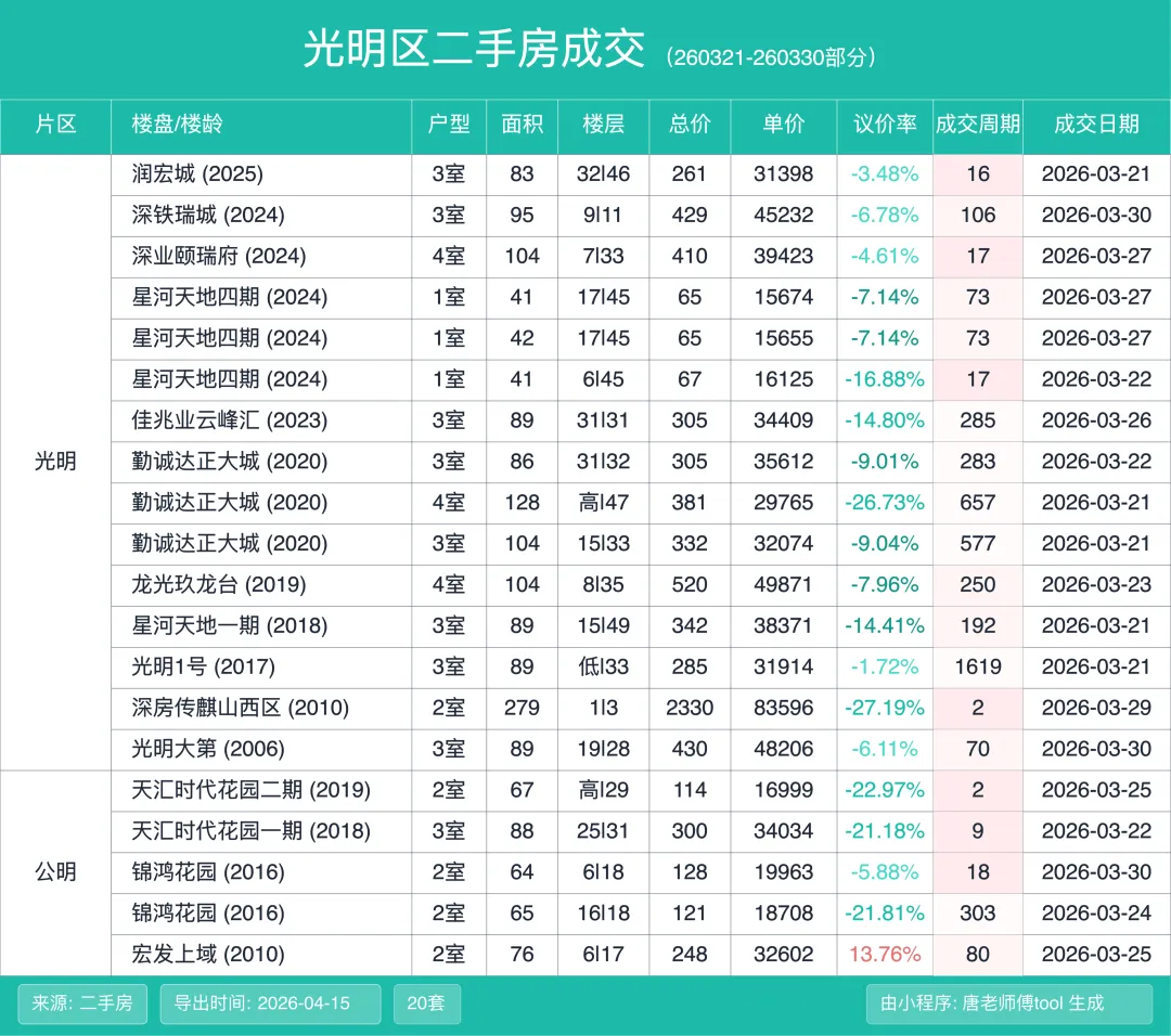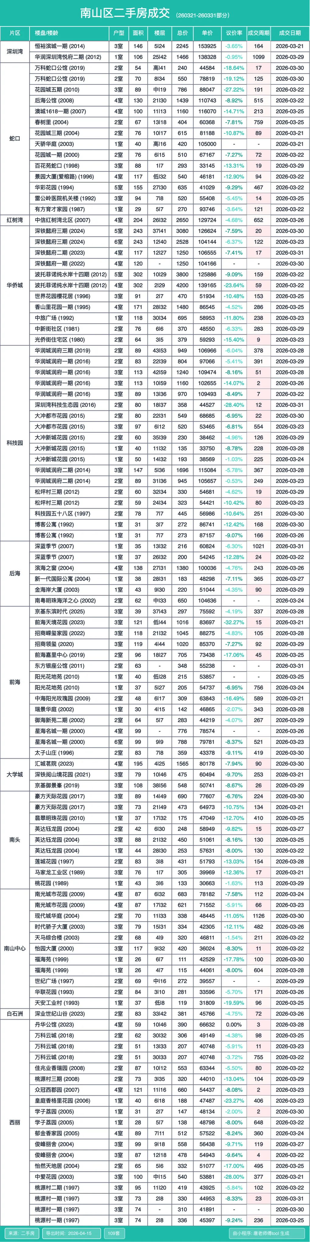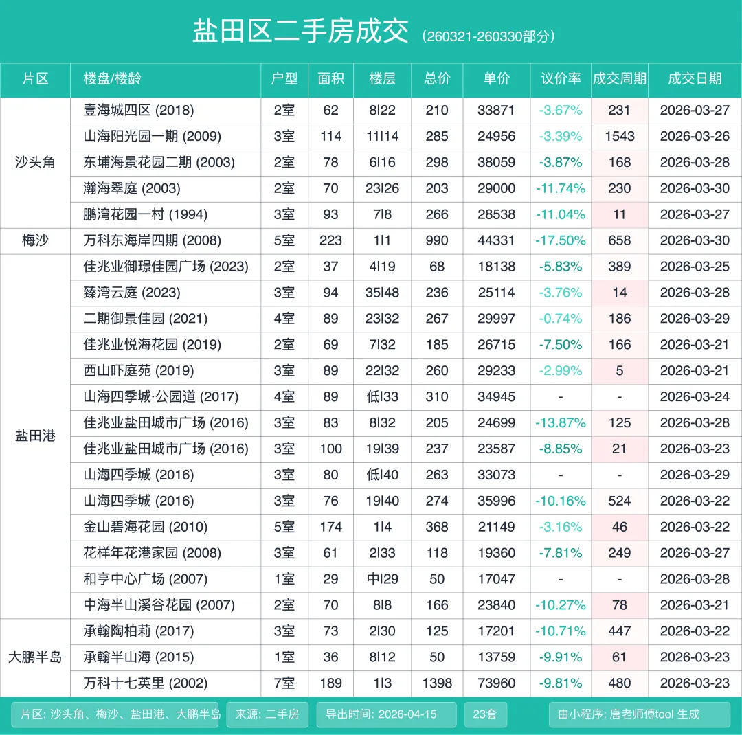 按惯例来给大家分享深圳二手房的成交明细,这次的统计周期是3月21日到3月31日这个期间的数据。