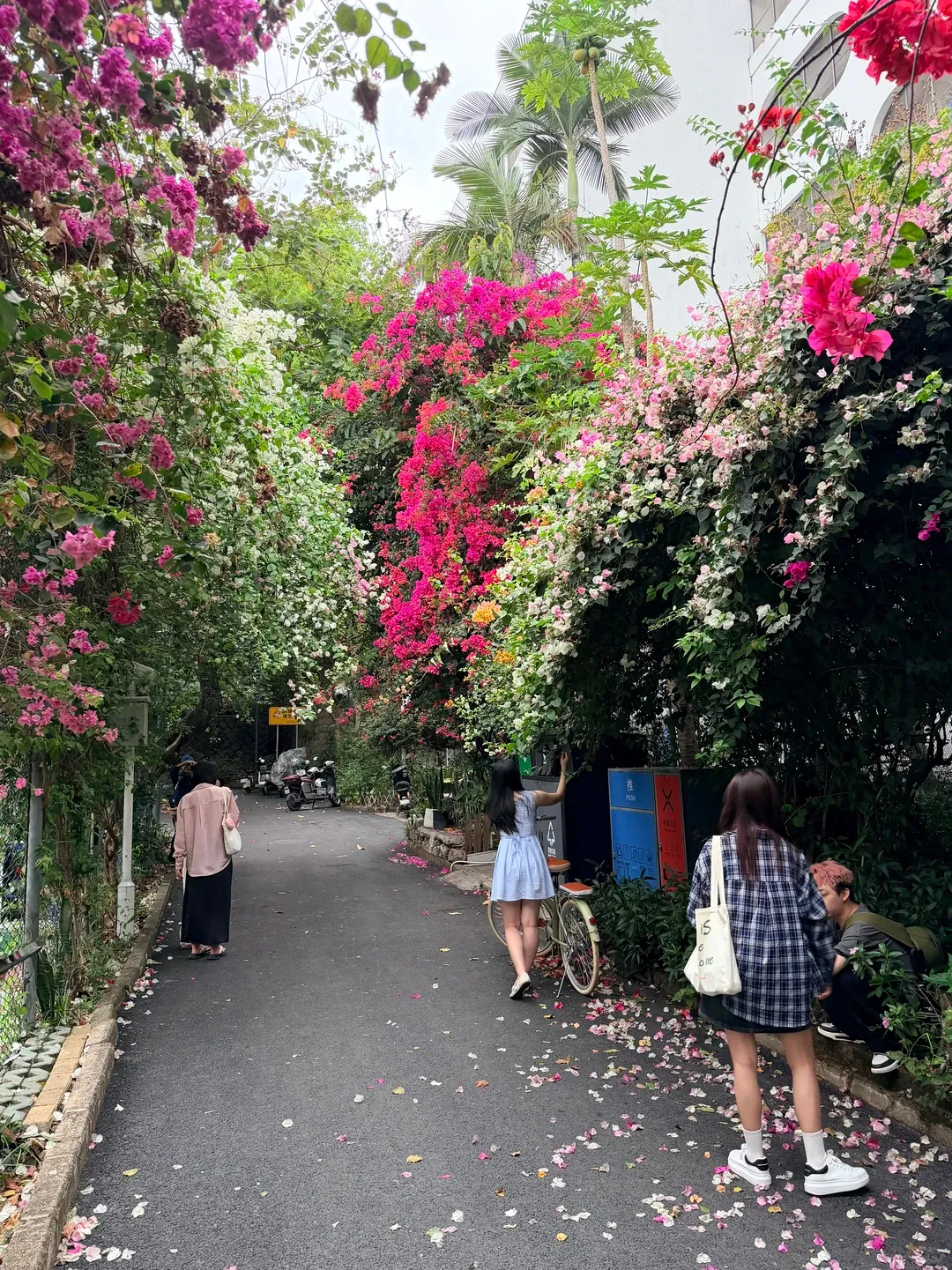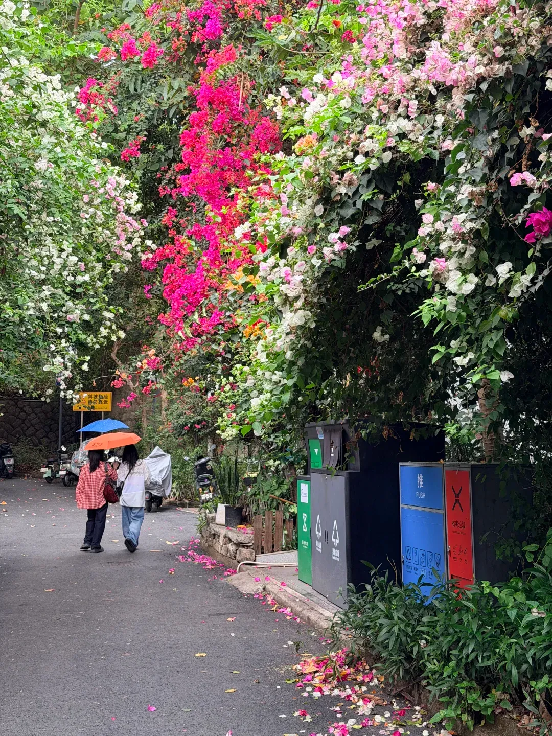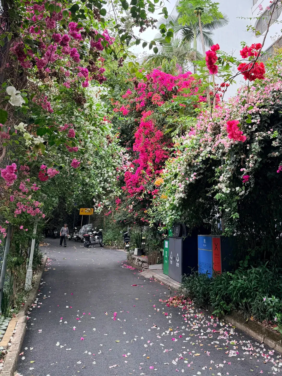 在深圳华侨城燕晗篮球场旁边,有这么一条巷子,三角梅开疯了!