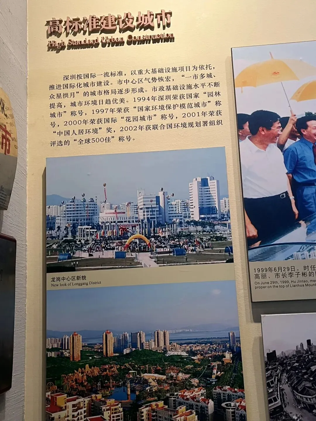 站在山顶俯瞰福田中心区全貌,市民中心形似大鹏展翅,平安大厦、春笋大厦等摩天大楼鳞次栉比,现代都市与绿色山林形成强烈视觉对比 。不得不敬佩小平同志改革开放的勇气和决策,使渔村成了高楼林立的现代化大都市,成了经济飞速发展的特区。怀着对一代领导人崇敬的感情我们下山去了市民中心,参观了福中路深圳博物馆。