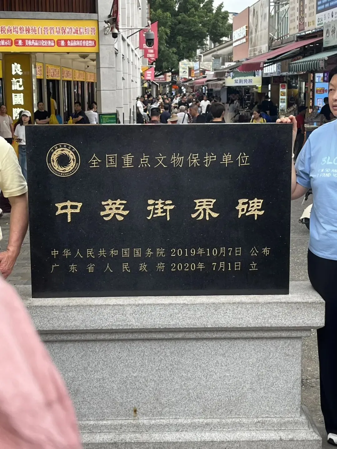 离开深圳博物馆还去了深圳市工业展览馆,感受一线城市“深圳创造”之美,机器人、低空经济、医疗器械、影像设备、智能玩具等给人们带来美好生活,感受到深圳工业发展的活力与魅力。出了场馆,一碗倍感亲切的老陕油泼面下肚,乘坐上地铁2号8号线前往沙头角中英街。出地铁,换乘公交B619,几分钟就到了中英街,刷身份证顺利安检通关。一出通道,黑色的“中英街界碑”、陈旧的界石就在眼前,镌刻着百年的历史沧桑,见证着时代的变迁。仔细看,界碑正对中英街,另一边是桥头街。这条百年老街,是名副其实的“一街两制,一脚踏两地”。街道不长,一边归属深圳,一边连着香港。走在窄窄的街道上,两侧商铺林立,一边是中文招牌,另一边则是英文招牌。这里既有浓郁的市井烟火气,又能让人深切感受百年的历史印记。
