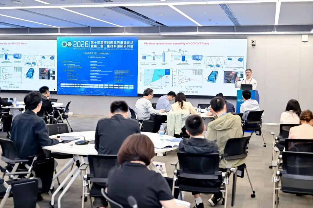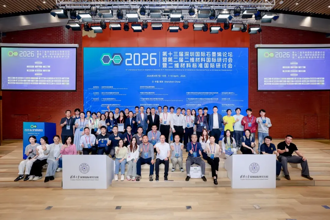 4月7-10日,2026深圳国际石墨烯论坛暨二维材料国际研讨会暨二维材料标准国际研讨会在清华大学深圳国际研究生院成功举办。本次会议在深圳市科技创新局和深圳市市场监管局指导下,由清华大学深圳国际研究生院、中国科学院金属研究所、中国科学院深圳先进技术研究院碳中和技术研究所、深圳盖姆石墨烯中心联合主办,广东省石墨烯创新中心、广东省热管理工程与材料重点实验室、广东省电催化材料与绿氢技术普通高校重点实验室、深圳理工大学、深圳市科技创新战略研究中心、深圳中国科学院院士活动基地、先进电池材料产业集群、深圳市电源技术学会、英国物理学会(IOP)出版社等单位共同协办。会议名誉主席由中国科学院深圳先进技术研究院成会明院士和清华大学深圳国际研究生院康飞宇教授担任,大会主席由中国科学院金属研究所任文才研究员和清华大学深圳国际研究生院刘碧录教授担任。