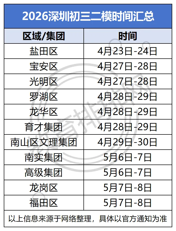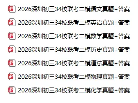 4月14日-4月15日,深圳34校进行了本学年的初三联考二模,参考学校名单暂未公布,为大家搜集了此次联考的全科真题+答案,有需要的家长可在下文领取~距离26年深圳中考不足两月,各大区域和集团都在密集进行模考,近期重要模考时间也给大家汇总如下:以上考试真题+答案,我会陆续更新,有需要的家长可以点击下方卡片,关注我。中考不仅是孩子的分数比拼,更是家长的志愿博弈。家长拿到成绩后该如何进行成绩换算和高中定位呢?给大家推荐教育排排网的录取测算功能,只要输入孩子成绩,就能精准定位孩子能报考的高中层次,科学规划志愿梯度,明确冲刺校、稳妥校、保底校的具体范围,让孩子的每一分努力都不被浪费!点击下方卡片即可体验👇: