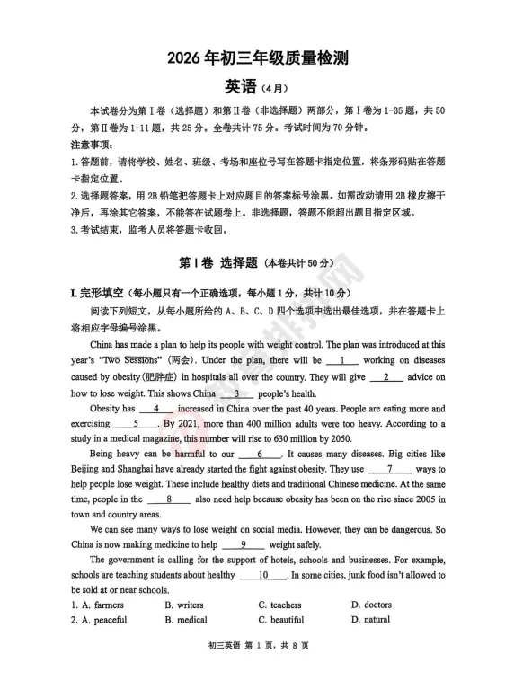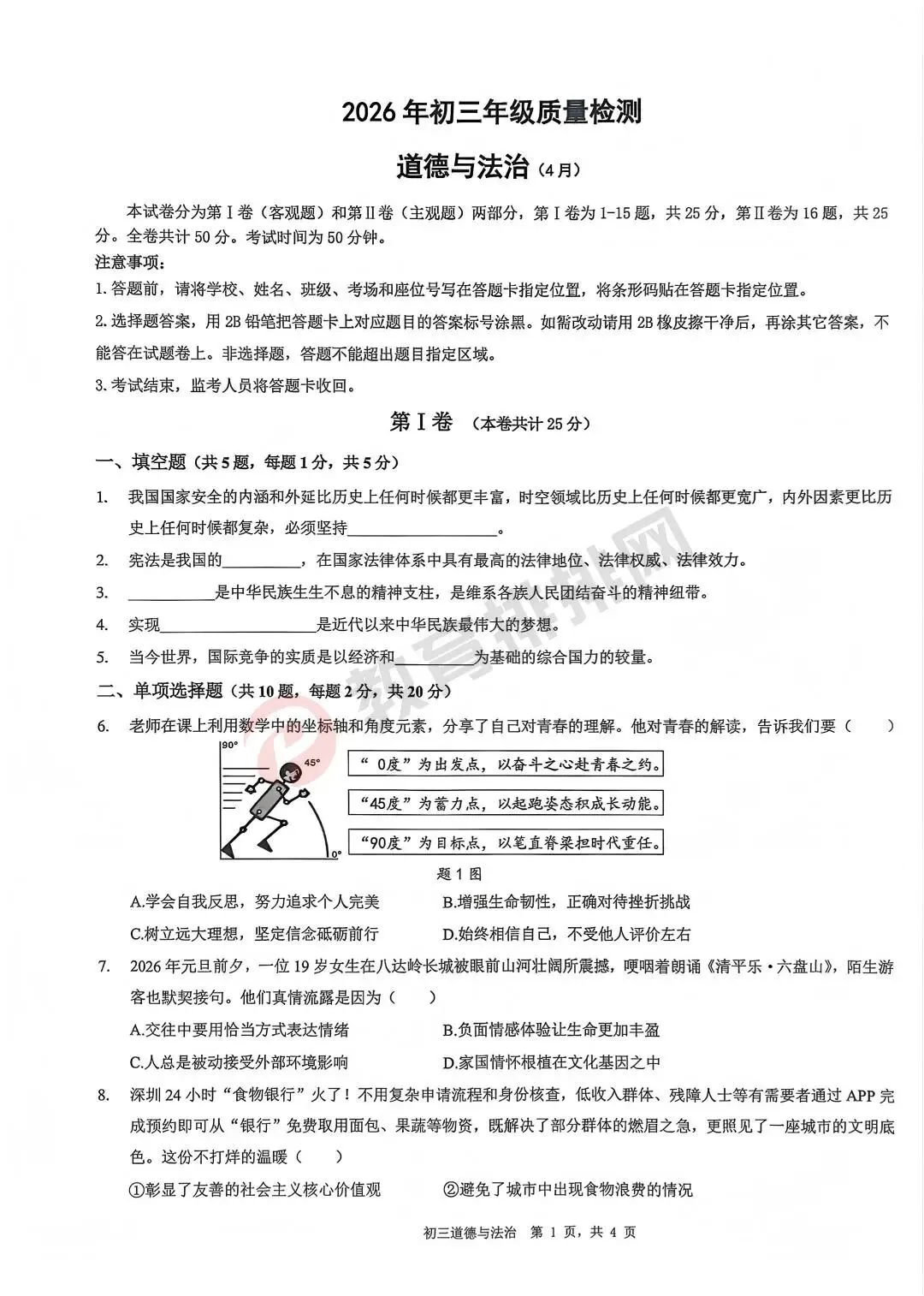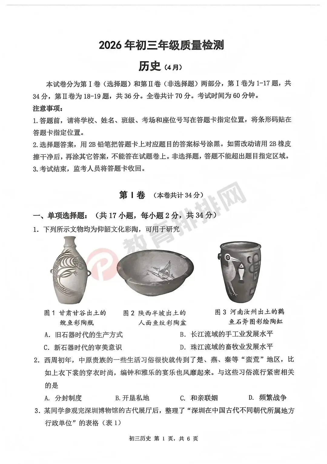 26年深圳初三34校联考二模全科真题解析出炉!附初三二模时间汇总